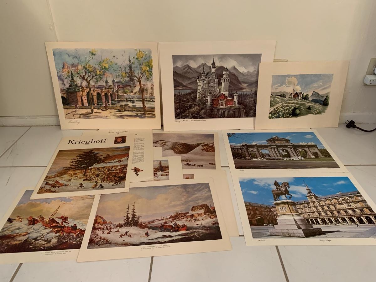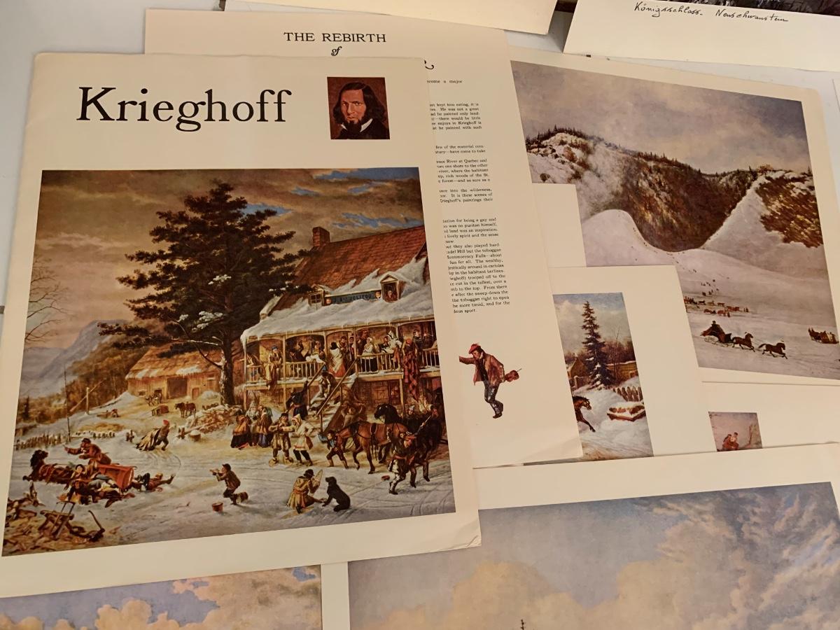 Lot includes 5 art prints including vintage lithos and a Krieghoff booklet with history and prints. All ready to be framed.