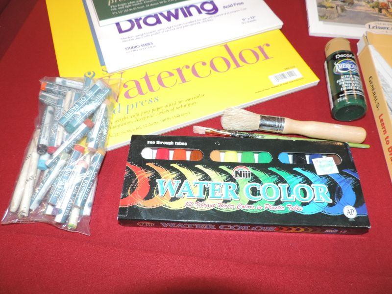 WATER COLOR PAINTS, MANY TABLETS FOR DRAWING AND SKETCHING AND SKETCHING CRAYONS BRING OUT THE ARTIST IN YOU