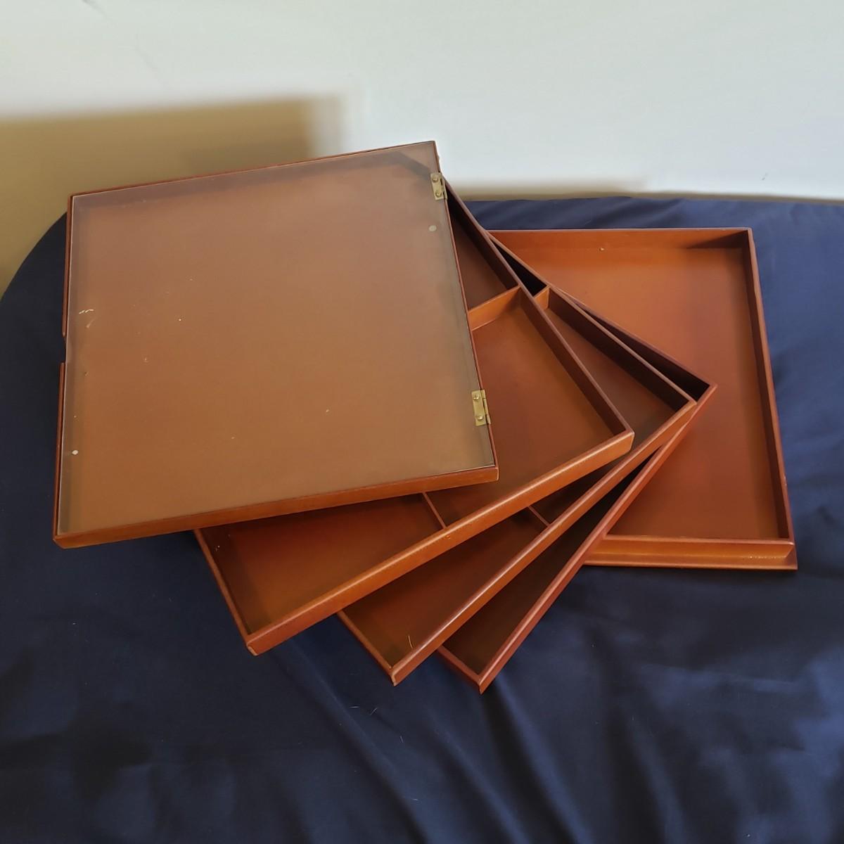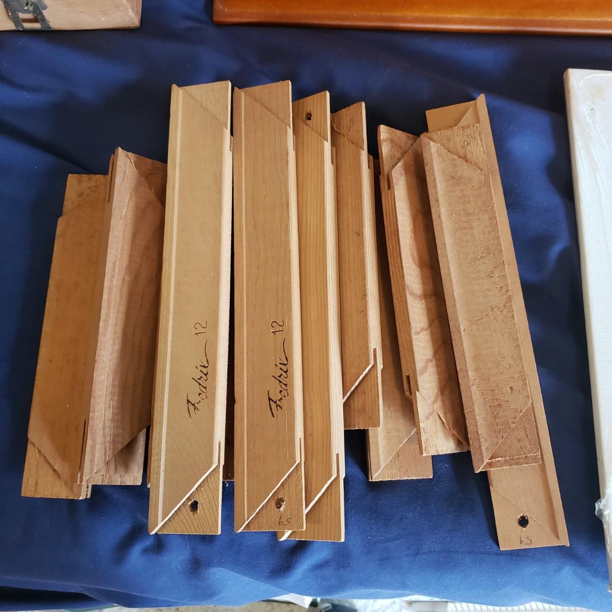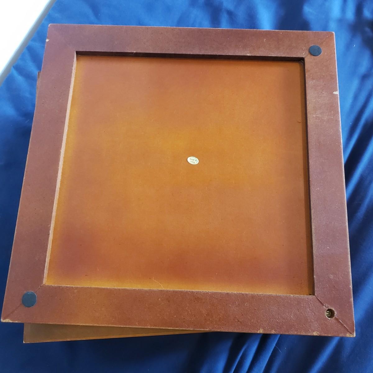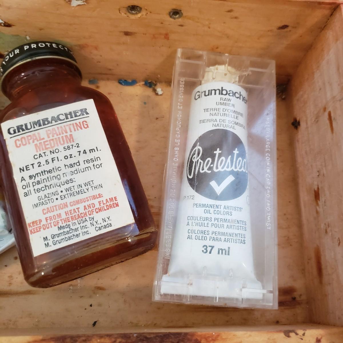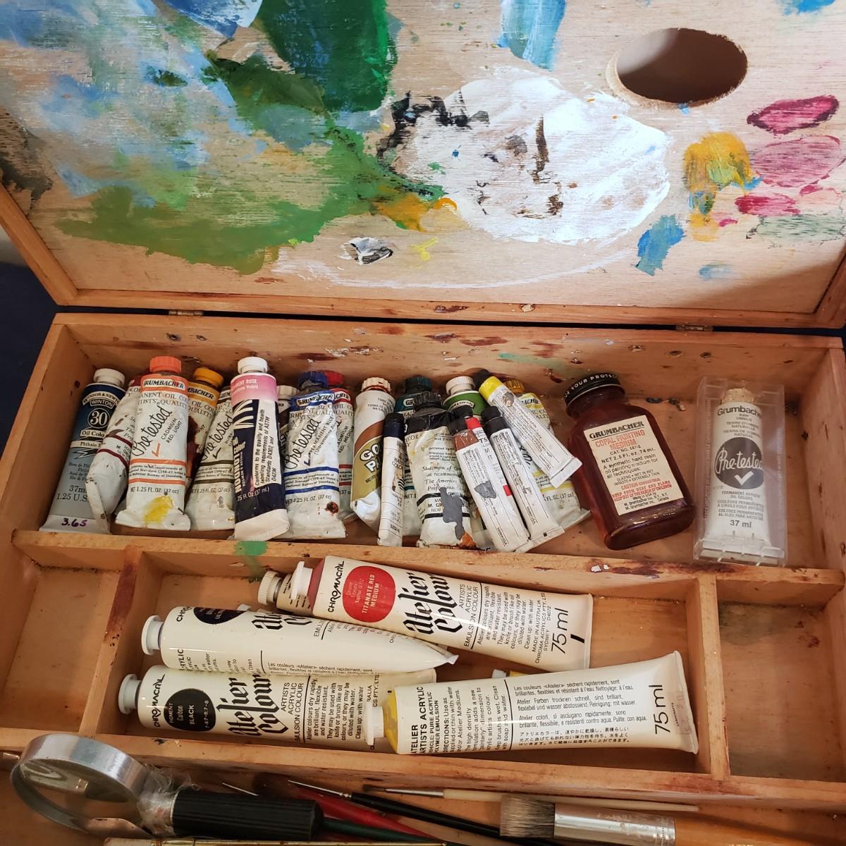 This art supply lot has a number of sketch books ready for your creativity! There are pictures of each book and a side view of how many pages are in each book. There is a brand new three pack of Fredrix 11" x 15" canvases. The six wooden easels measure 10" x 9" x 15"H when standing. The wood case with locks and a handle contains paint and brushes. The contents/age of the paint tubes cannot be guaranteed, but they do feel soft. The five tiered wood box that swivels from one corner can hold all your artistic supplies! The box measures 14" x 14" x 7"H. The lid is made of clear plexiglass.
