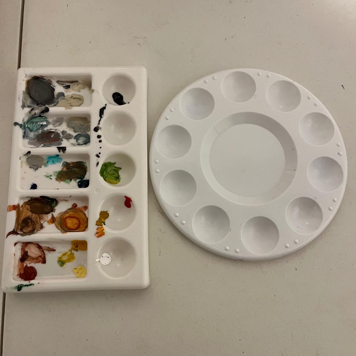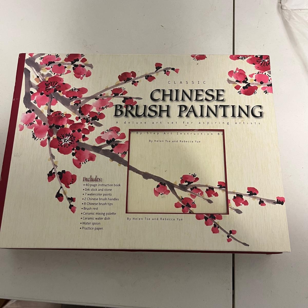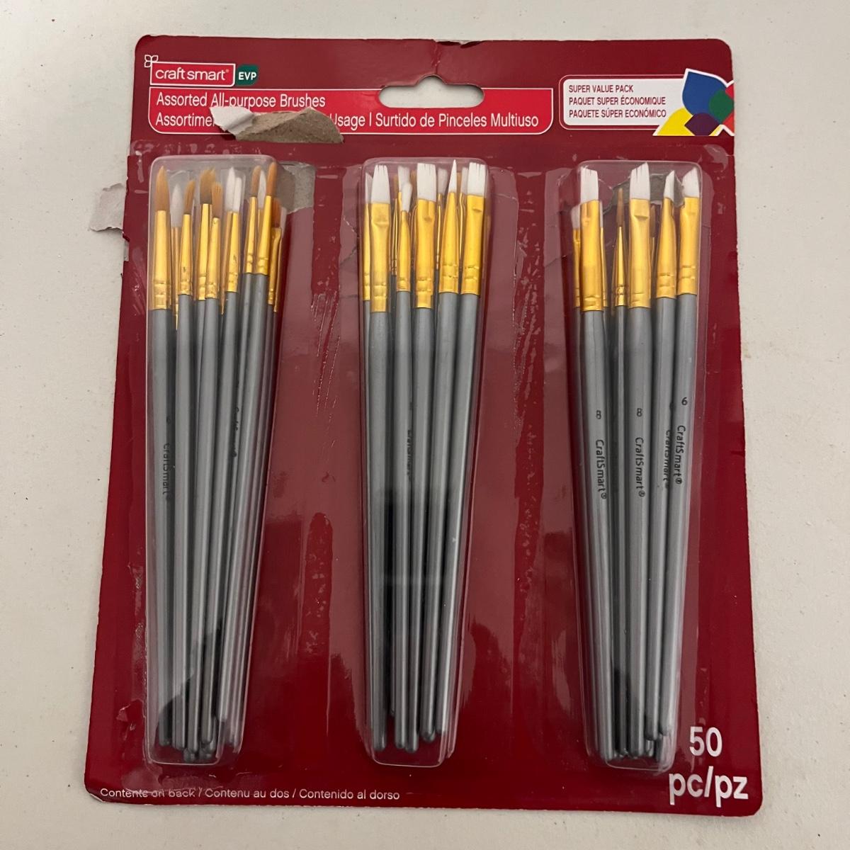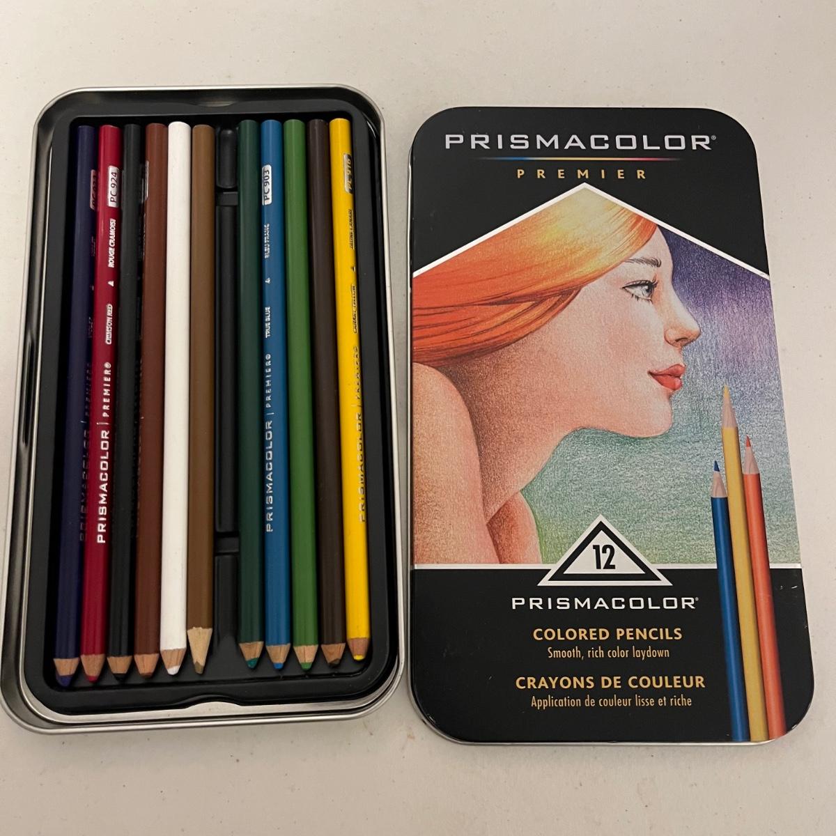 Lot includes Prismacolor pencils, set of brushes, canvas, Chinese brush painting kit, trio of wooden human form models, knitting needles and more. Models measure 3”D x 12”H.