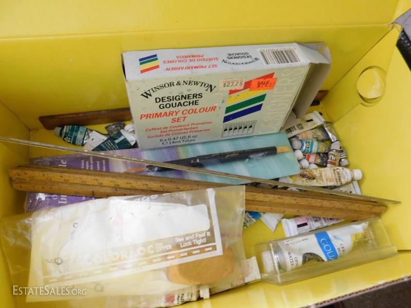 Art Supplies Large Box of Expo Markers and Accessories. Unknown condition of tube contents.