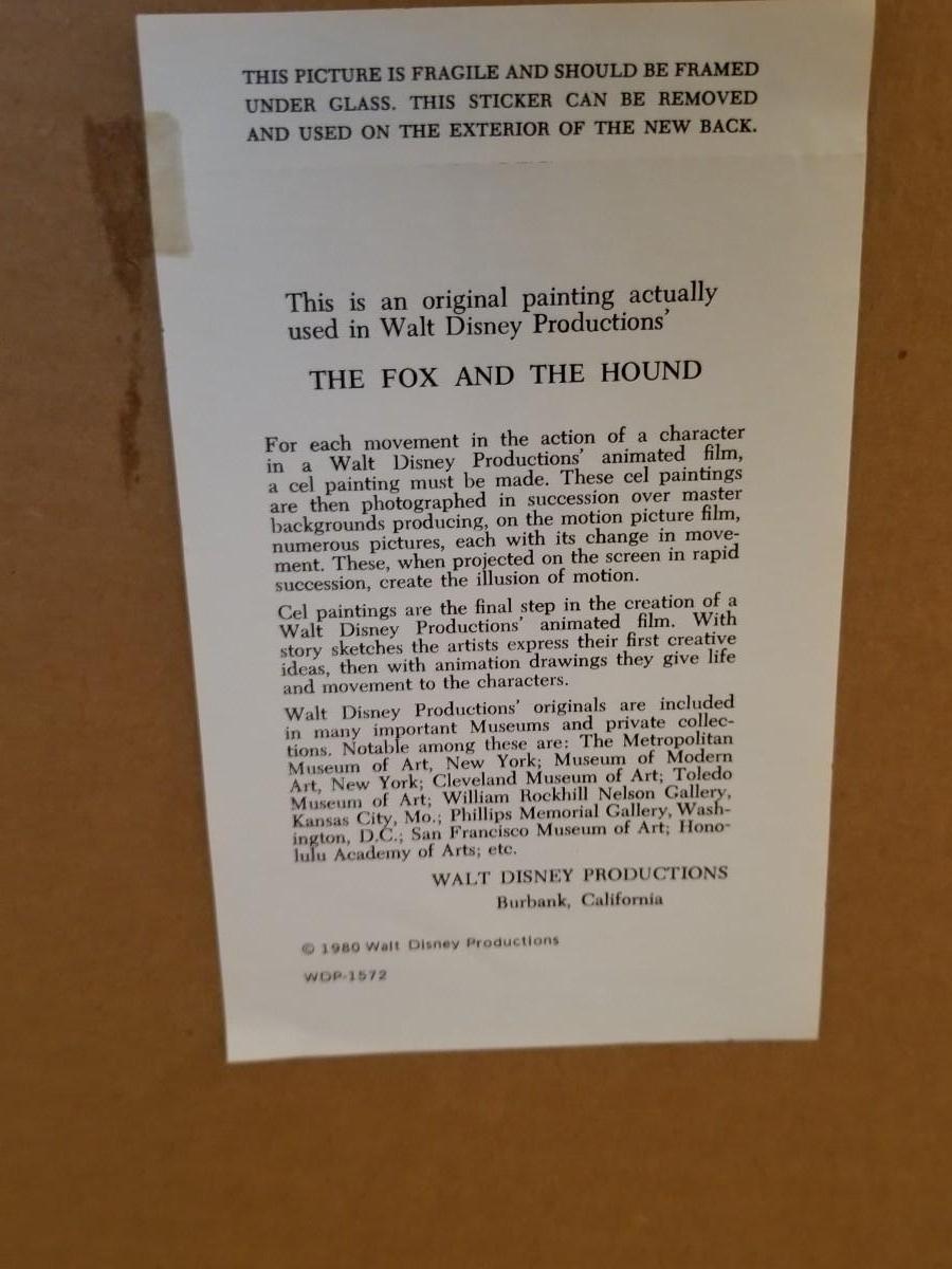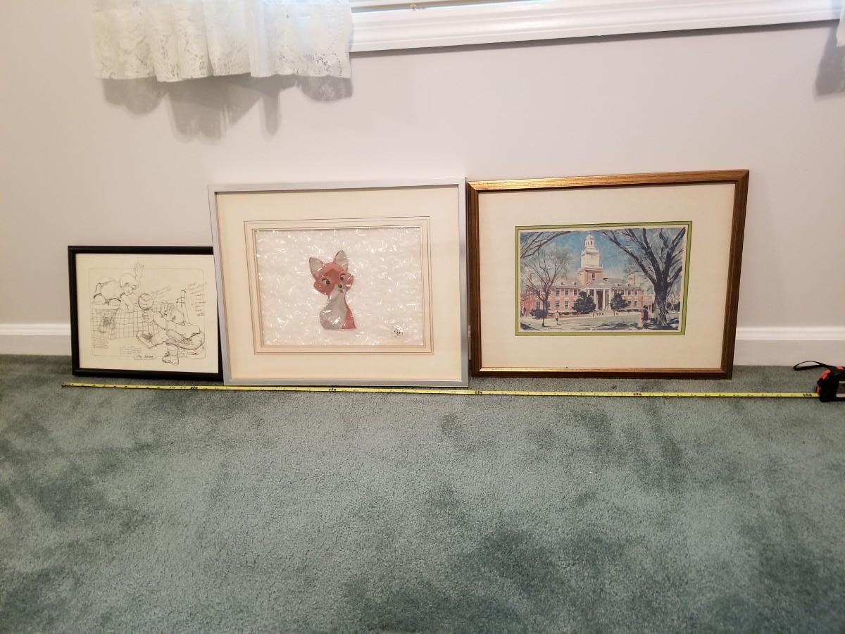 3 pieces of framed art, Walt Disney Productions "The Fox and the Hound"