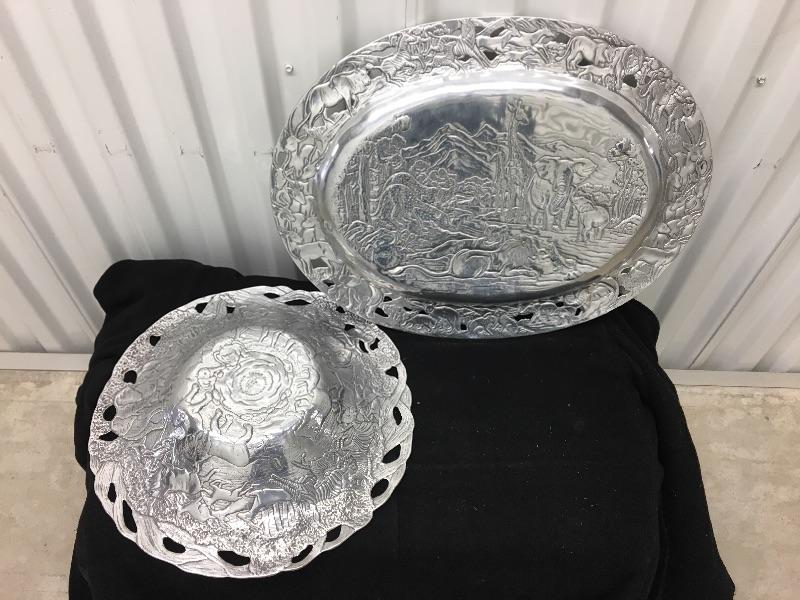 Designer set of serving pieces in excellent condition. Platter measures 19”w x 14”h. Bowl measures 14” across the top. Packaging and shipping services available. Please contact us for a quote before bidding.