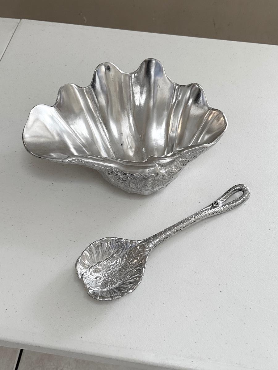 Clam Bowl. = 4” H x 11” W x 8” D & the Elephant serving spoon is 11” ~ New ~ Never used