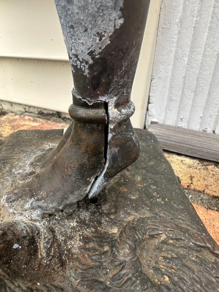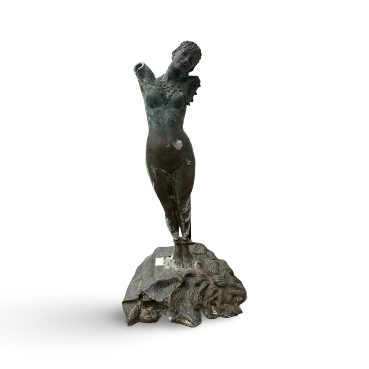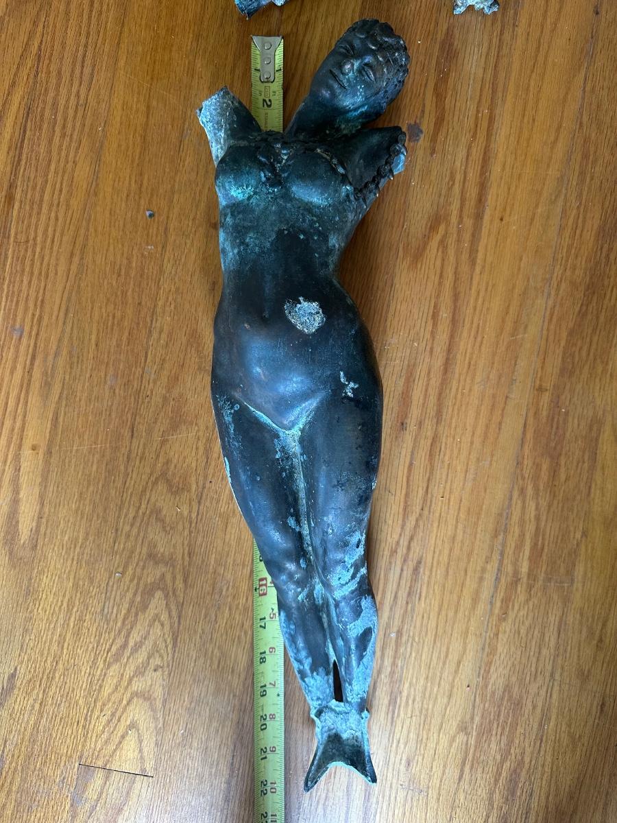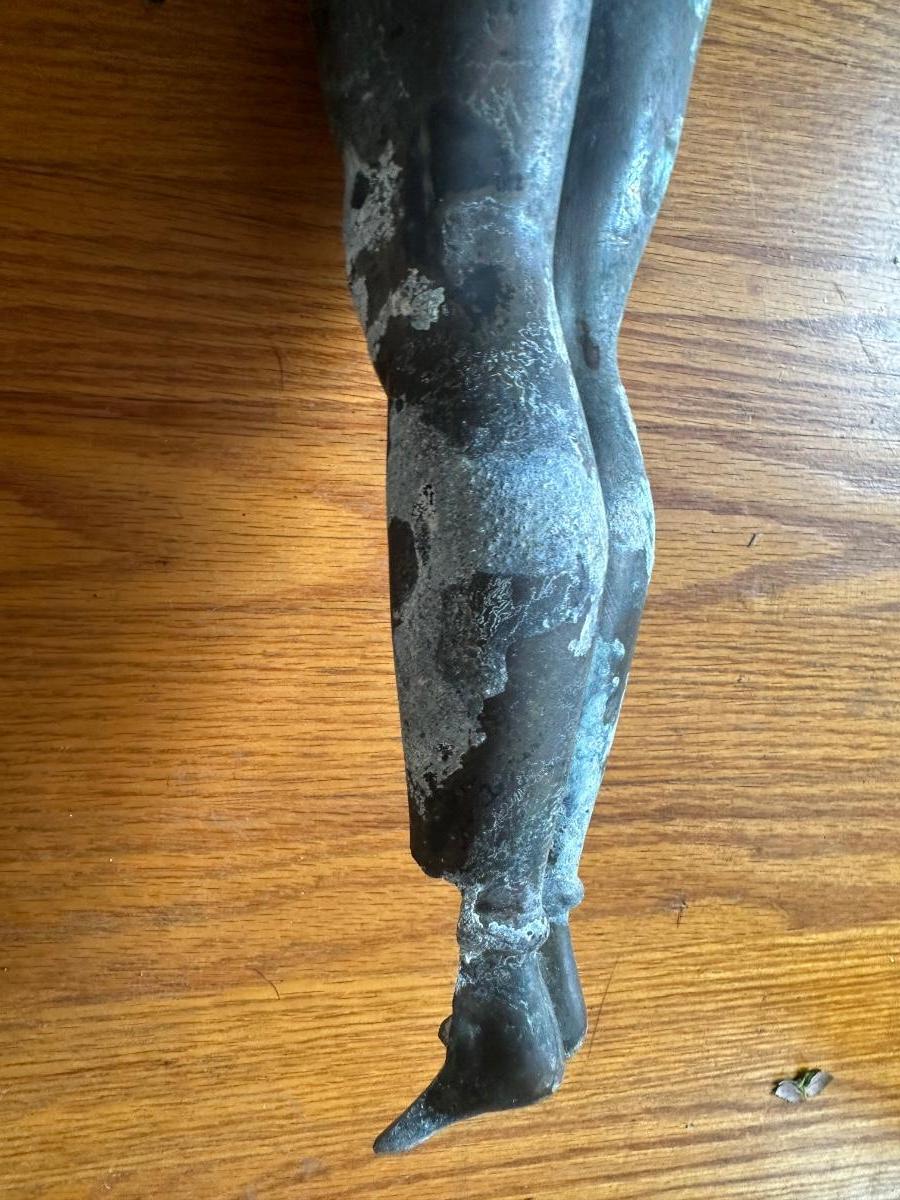 This beautiful piece needs to be repaired! The arms and base of her feet need to be reattached. Her fingers need some repair, see pictures. She is also missing her tambourine which rests in her hand.