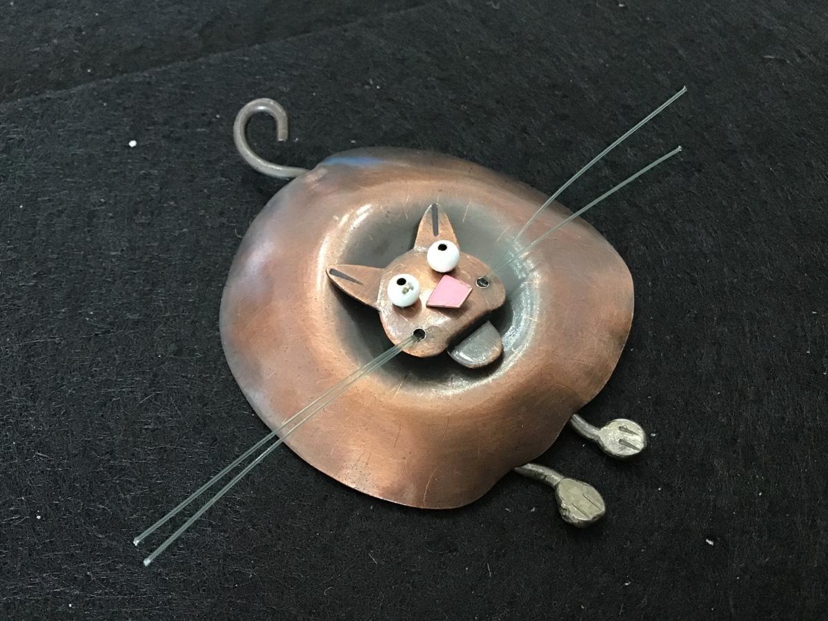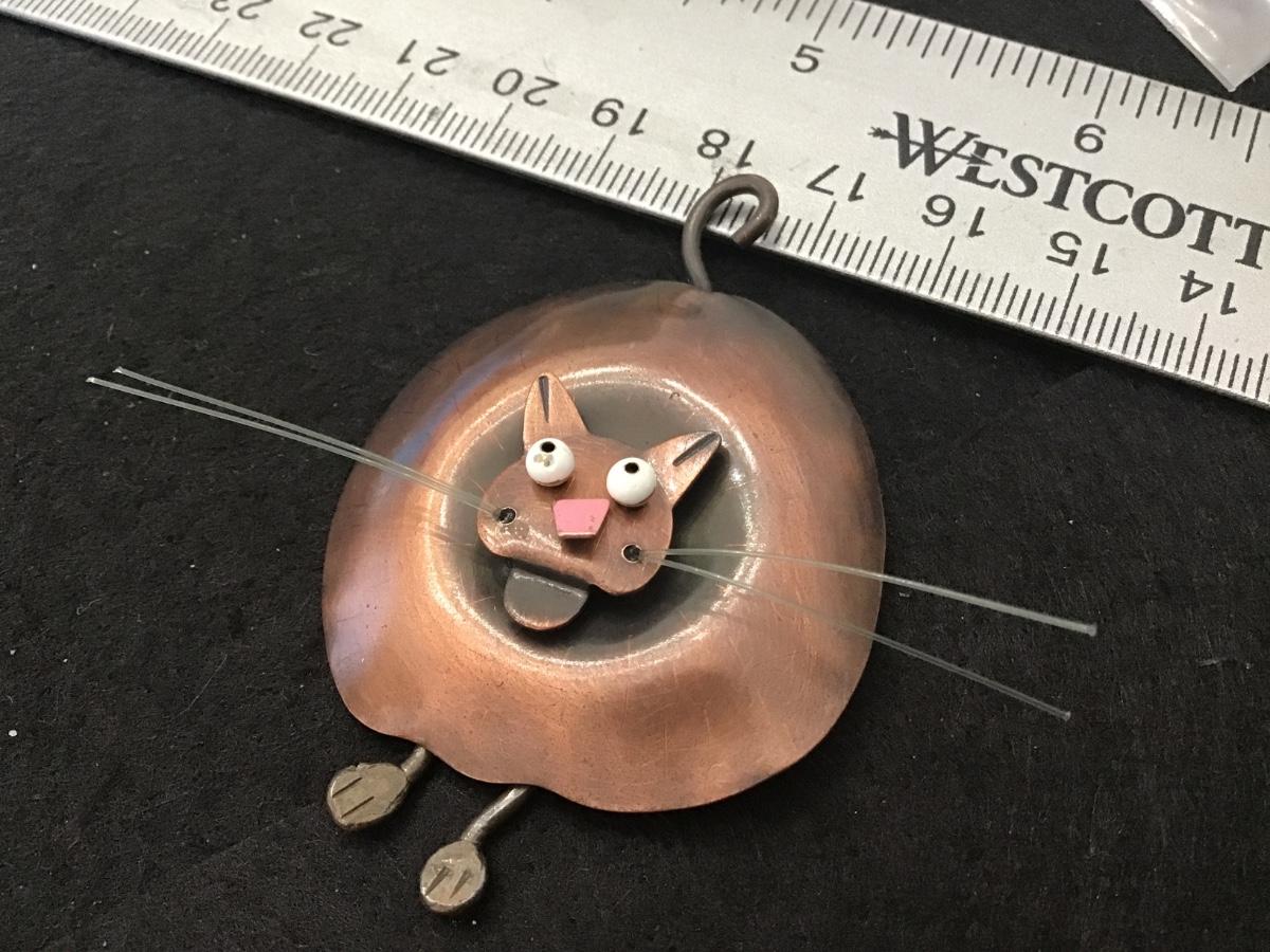 Articulated Feet Bronze-Brass Kitty Brooch Vintage
