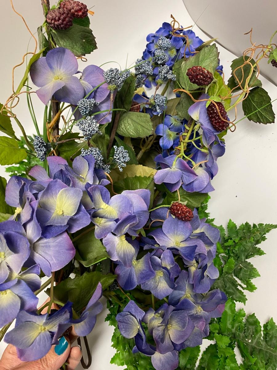 Lot of artificial flowers and greenery. Separate stemmed pieces. Great for crafts and arrangements.