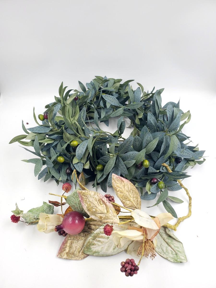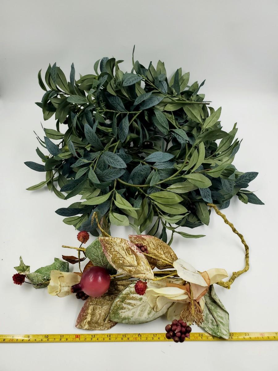 ARTIFICIAL FLORAL SPRAY AND GREEN GARLAND BRANCH