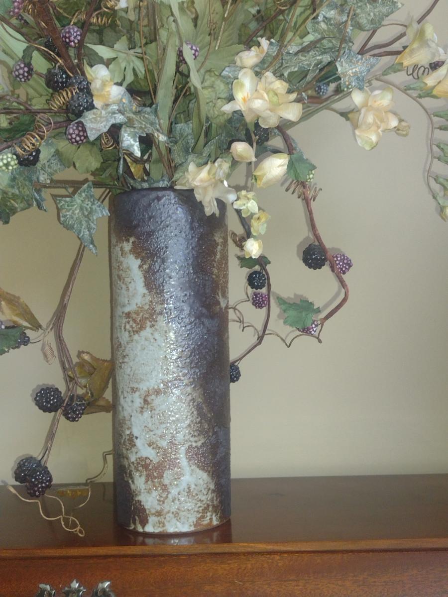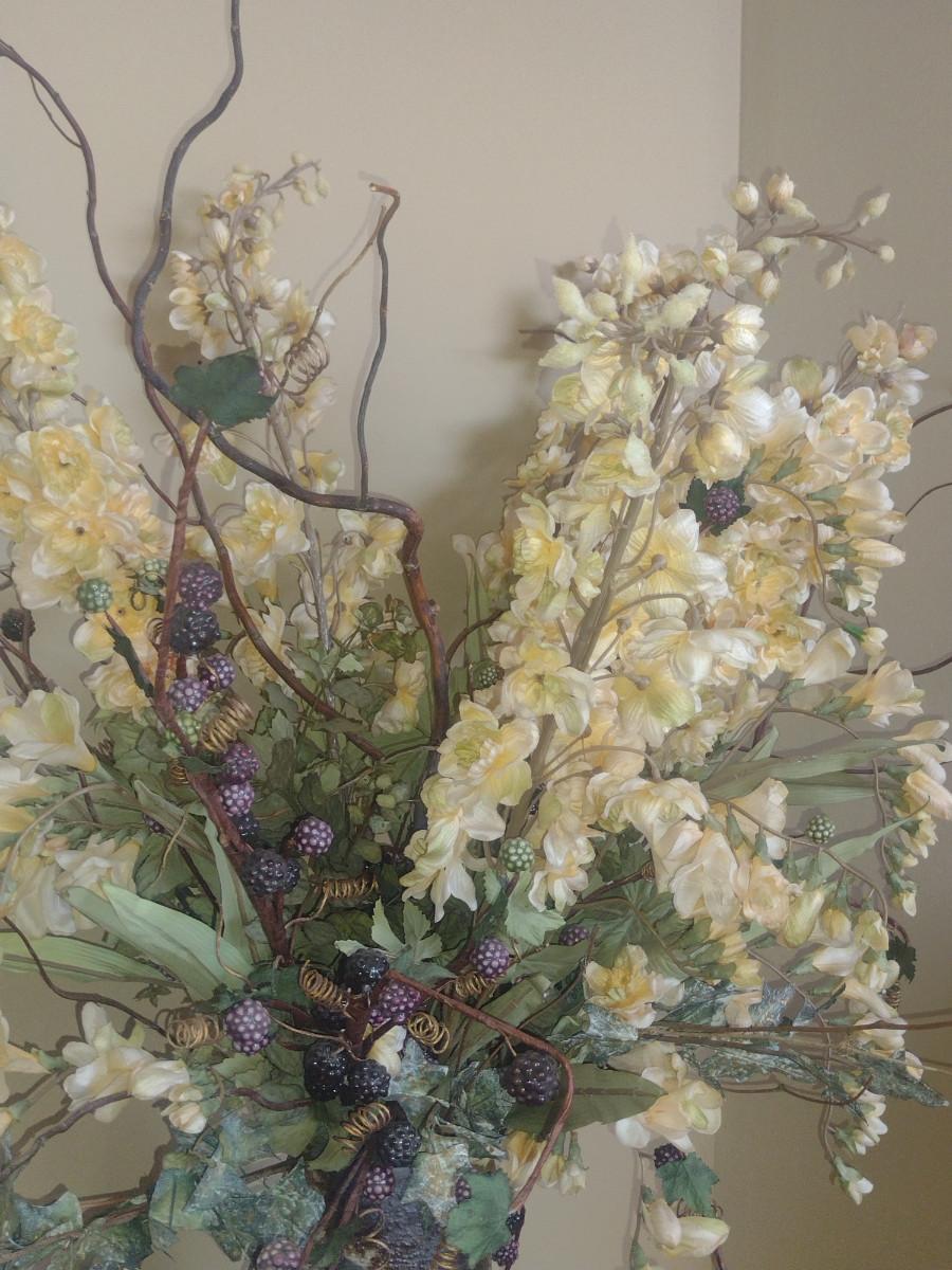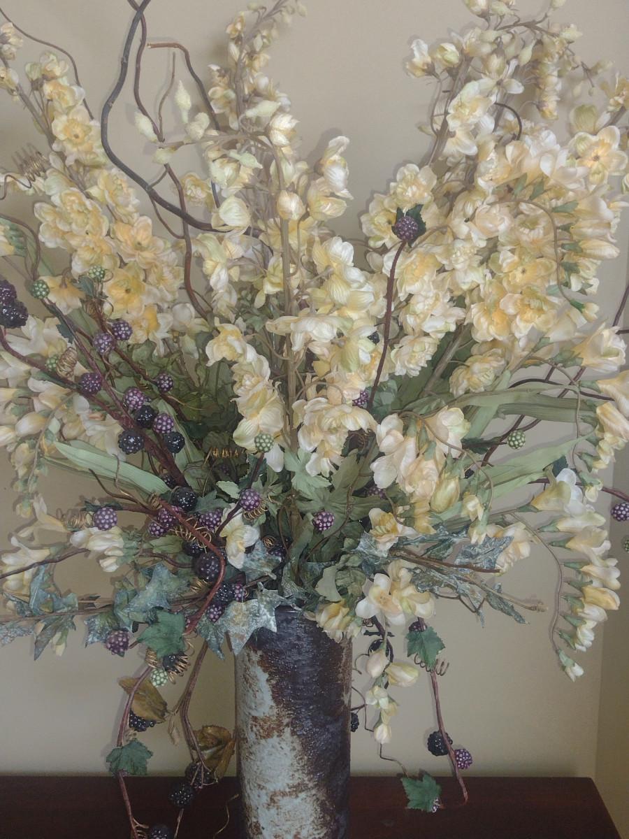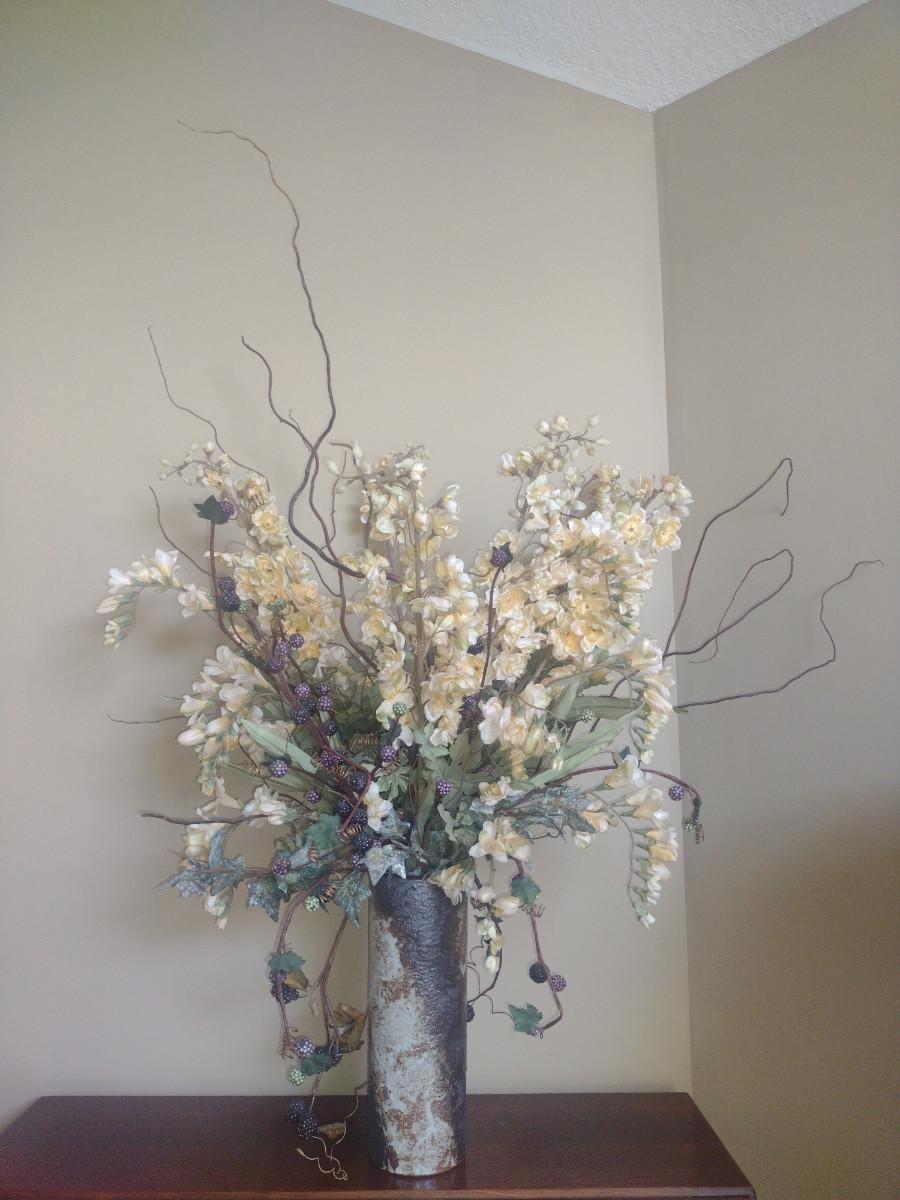Artificial Flower Arrangement in Asian Pottery Vase- Approx 12" Tall