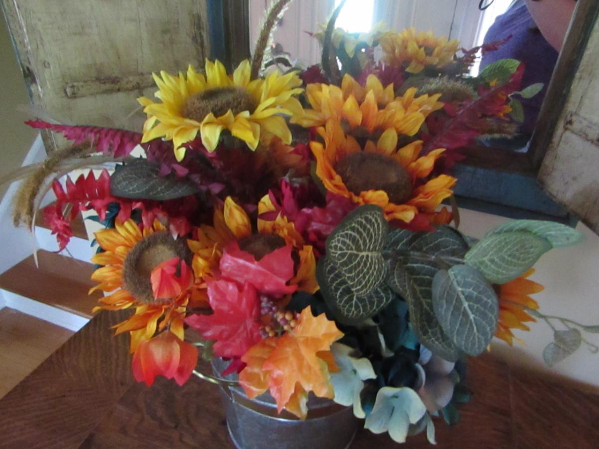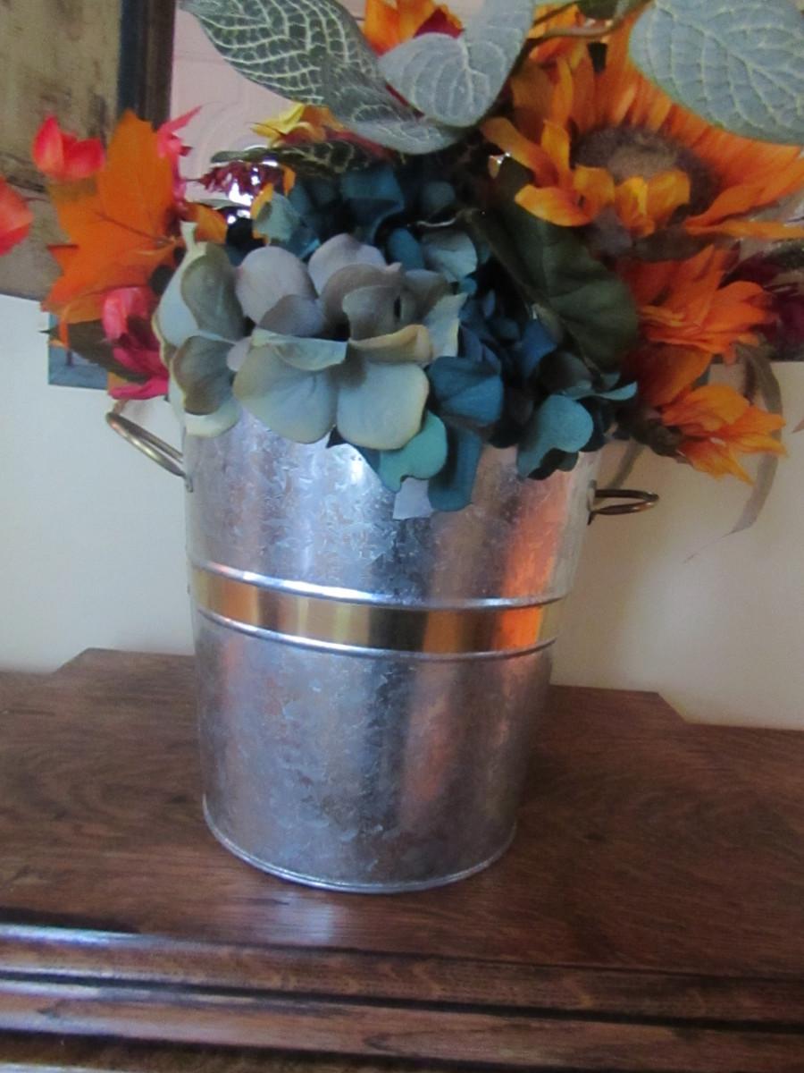 Artificial Flower Arrangement in Galvanized Bucket (Entry)