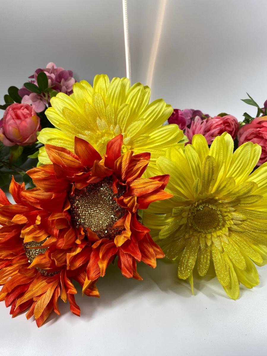 Artificial Springtime Floral Garland and Long-Stemmed Daisy Sunflowers