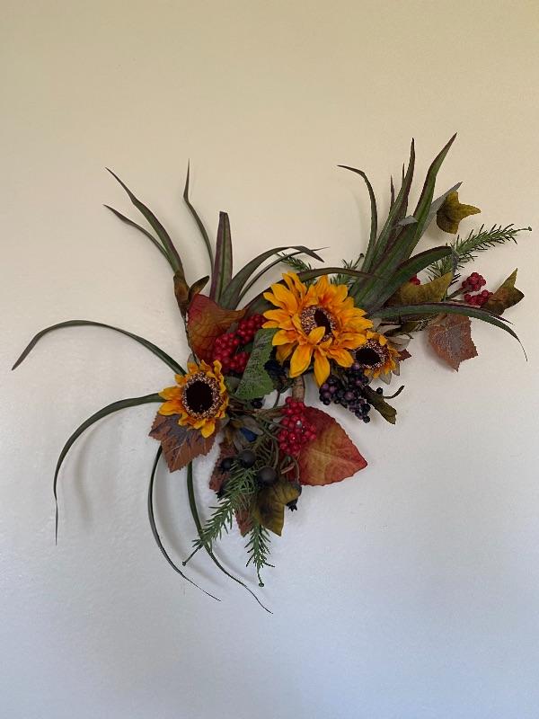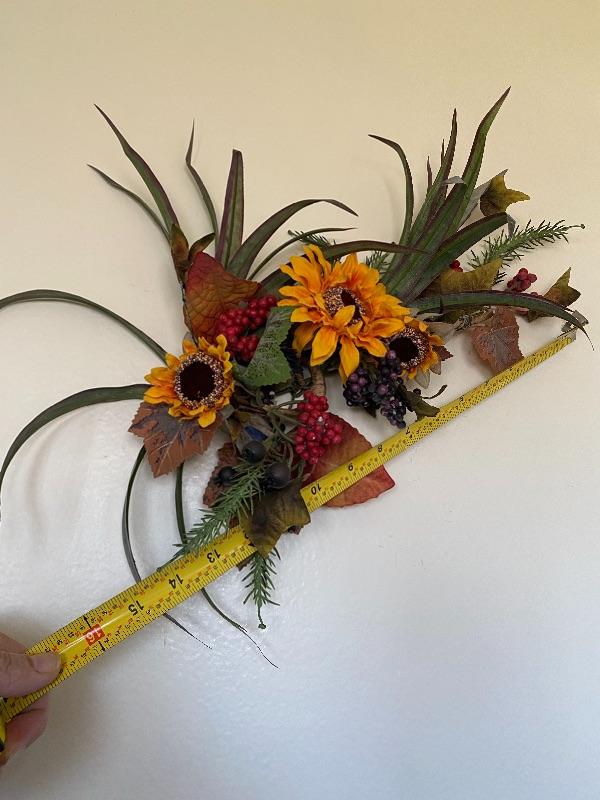 Small artificial sunflower wall hanging. Country farmhouse charm. About 14".