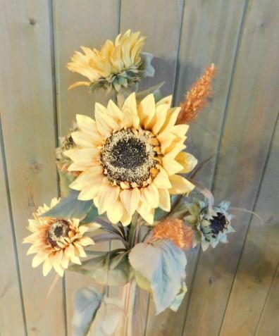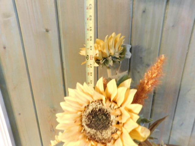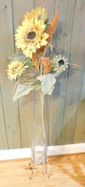 Artificial Sunflowers Arranged in a Tall Glass Bottle Floor Vase with Metal Stand 50"