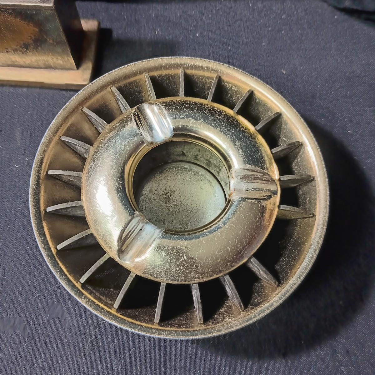 ARTILLERY SHELL ASHTRAY, MID-CENTURY ASHTRAY, TABLE LIGHTER AND WOODEN TOBACCO BOX