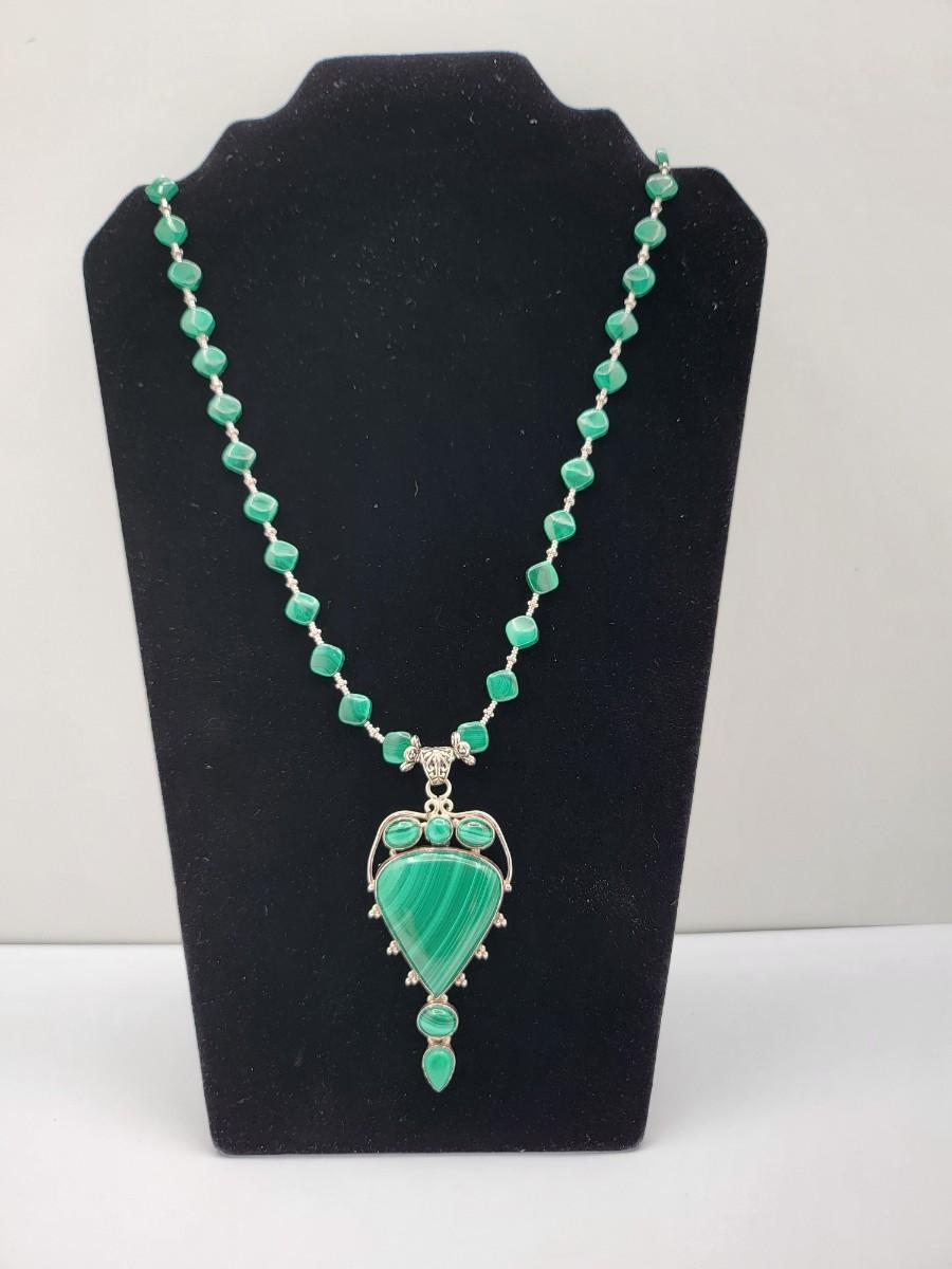 Artisan 925 Malachite Stone Necklace 60.4gr $500 Value