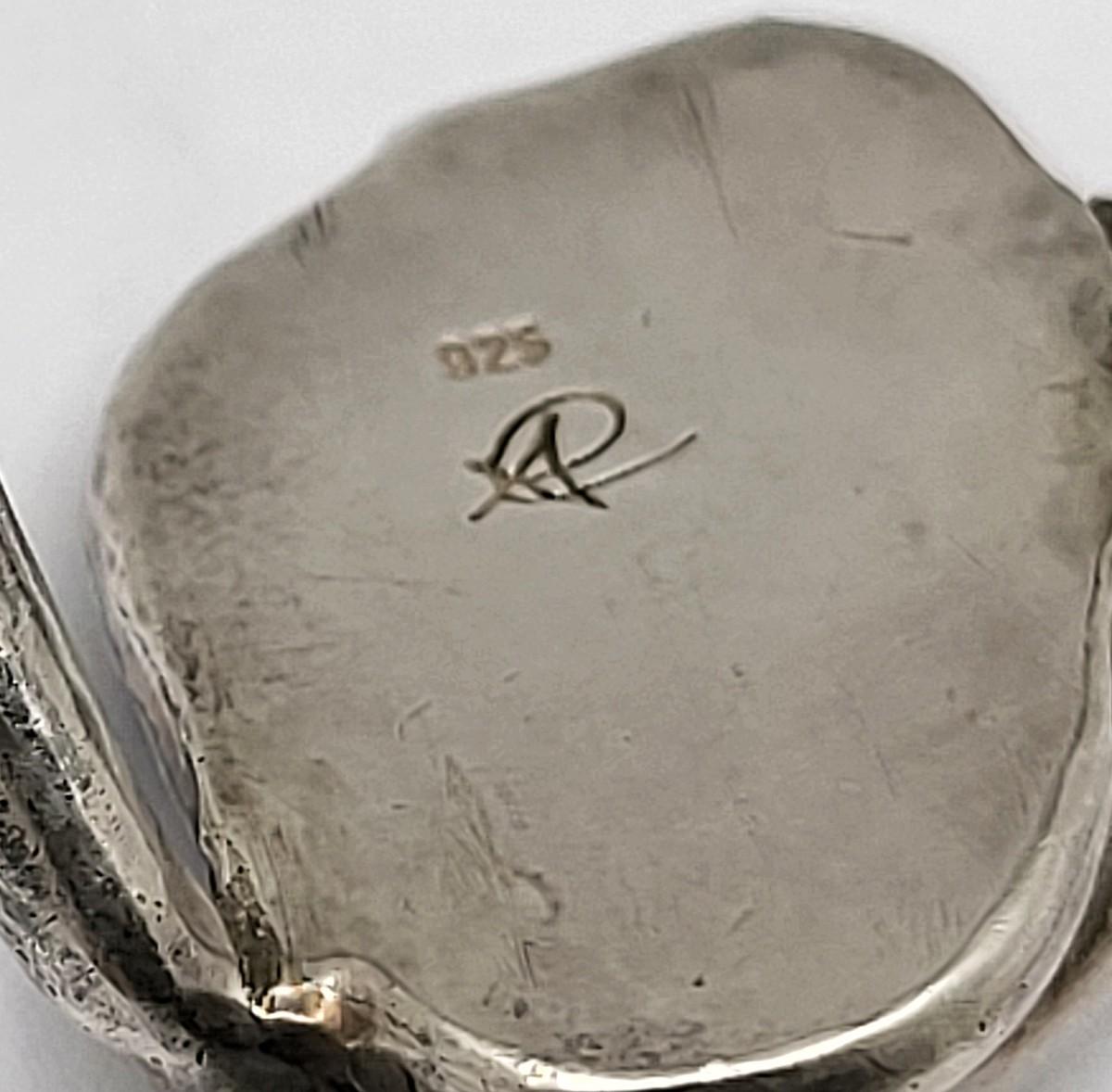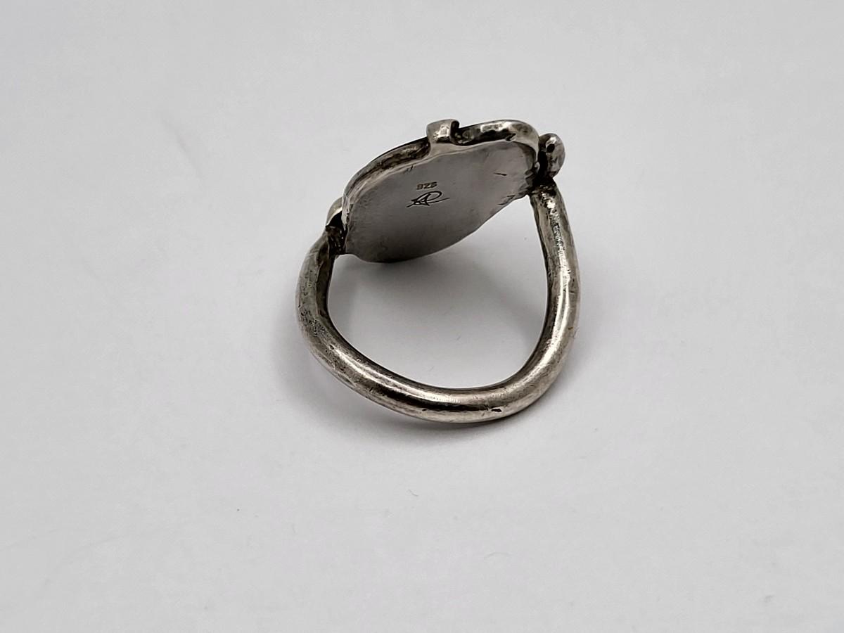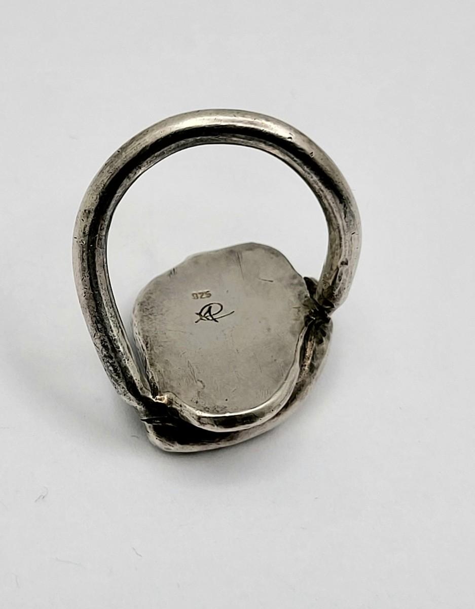 Vintage hand-crafted ring. Cool & unusual...OOAK. Etched asp/snake and blue Lapis Lazuli stone. Face of the rinf is 1.25" x .75" and is a size 12. Stamped 925 and artist etched initials. Weighs 13.9 grams