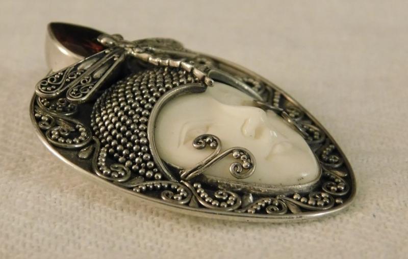 Artisan Crafted Dragonfly Carved Bone Goddess in Sterling Silver