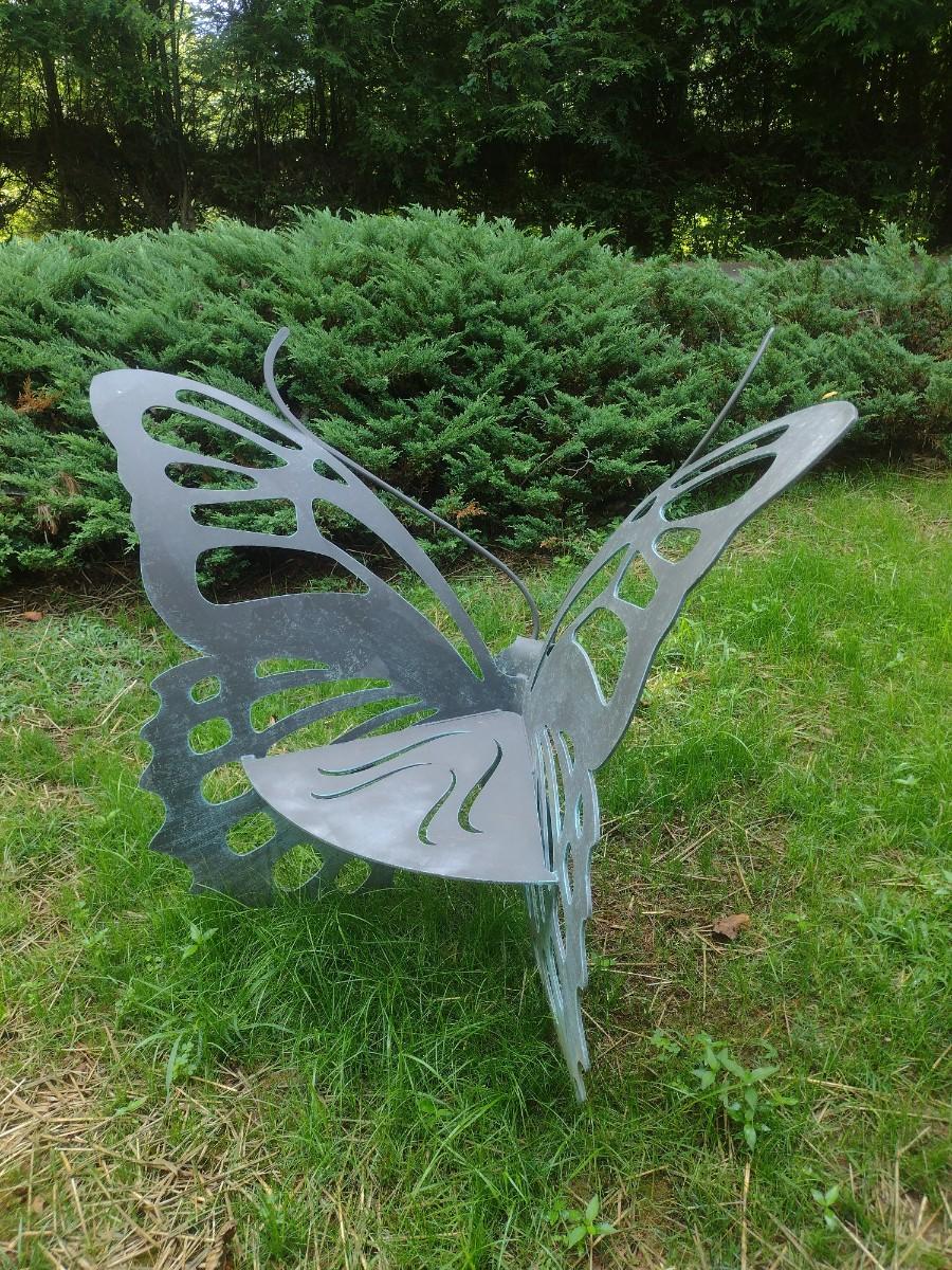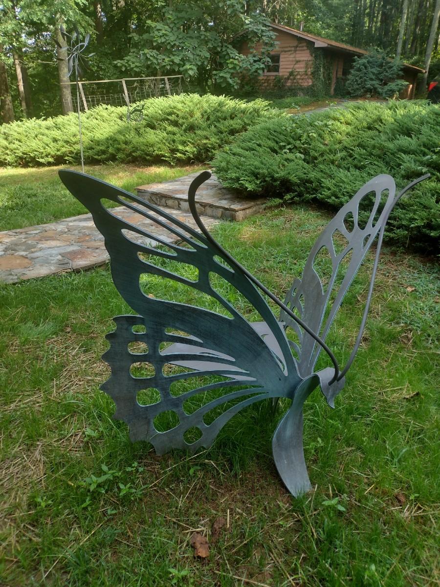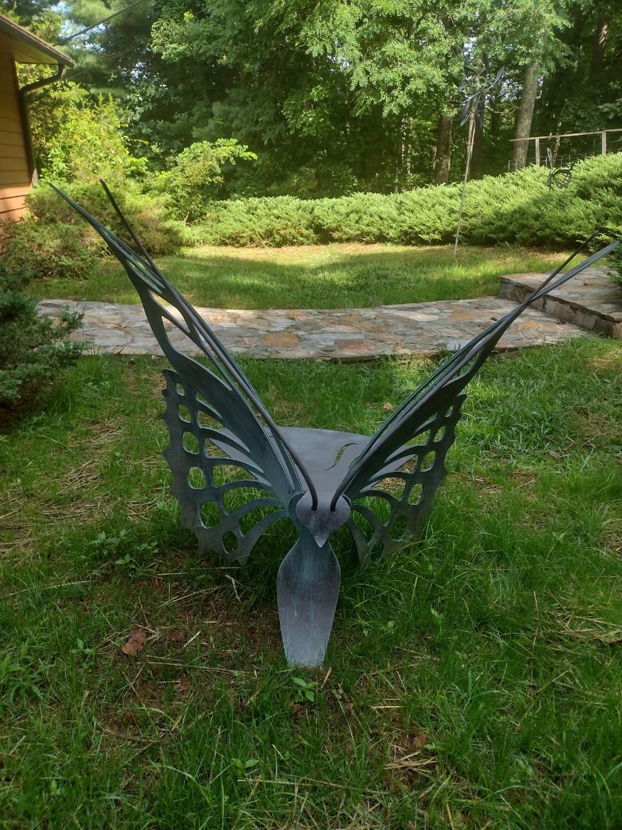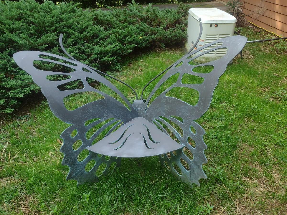 Artisan Crafted Metal Yard Art Butterfly Garden Seat