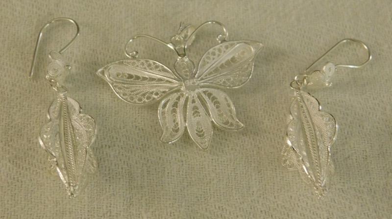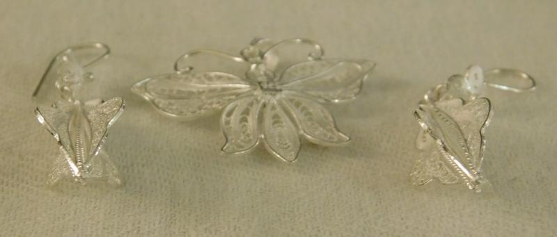 Artisan Crafted Sterling Silver Butterfly Pendant with Matching Earrings. Beautifully whimsical and delicate appearance. Nice set.
