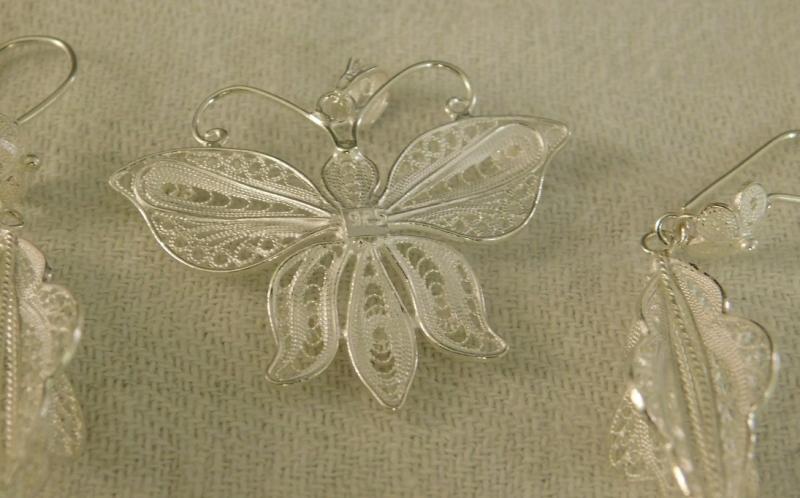 Artisan Crafted Sterling Silver Butterfly Pendant with Matching Earrings