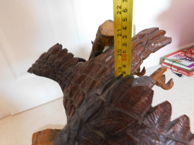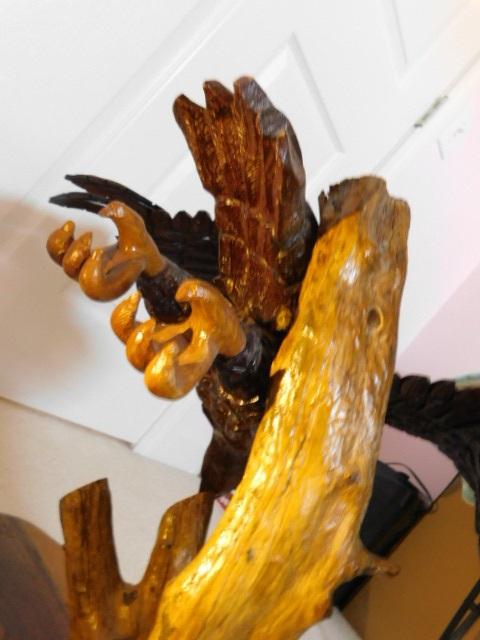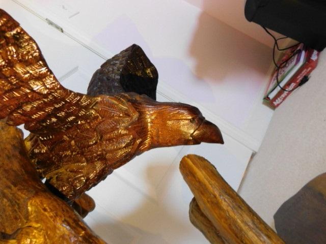Artisan Crafted Wood Eagle Sculpture Large Size 28"x21" appears to have a feather missing on one wing. Nonetheless, a really nice item