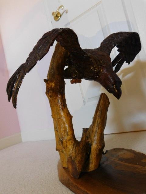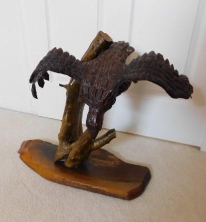 Artisan Crafted Wood Eagle Sculpture Large Size 28"x21"