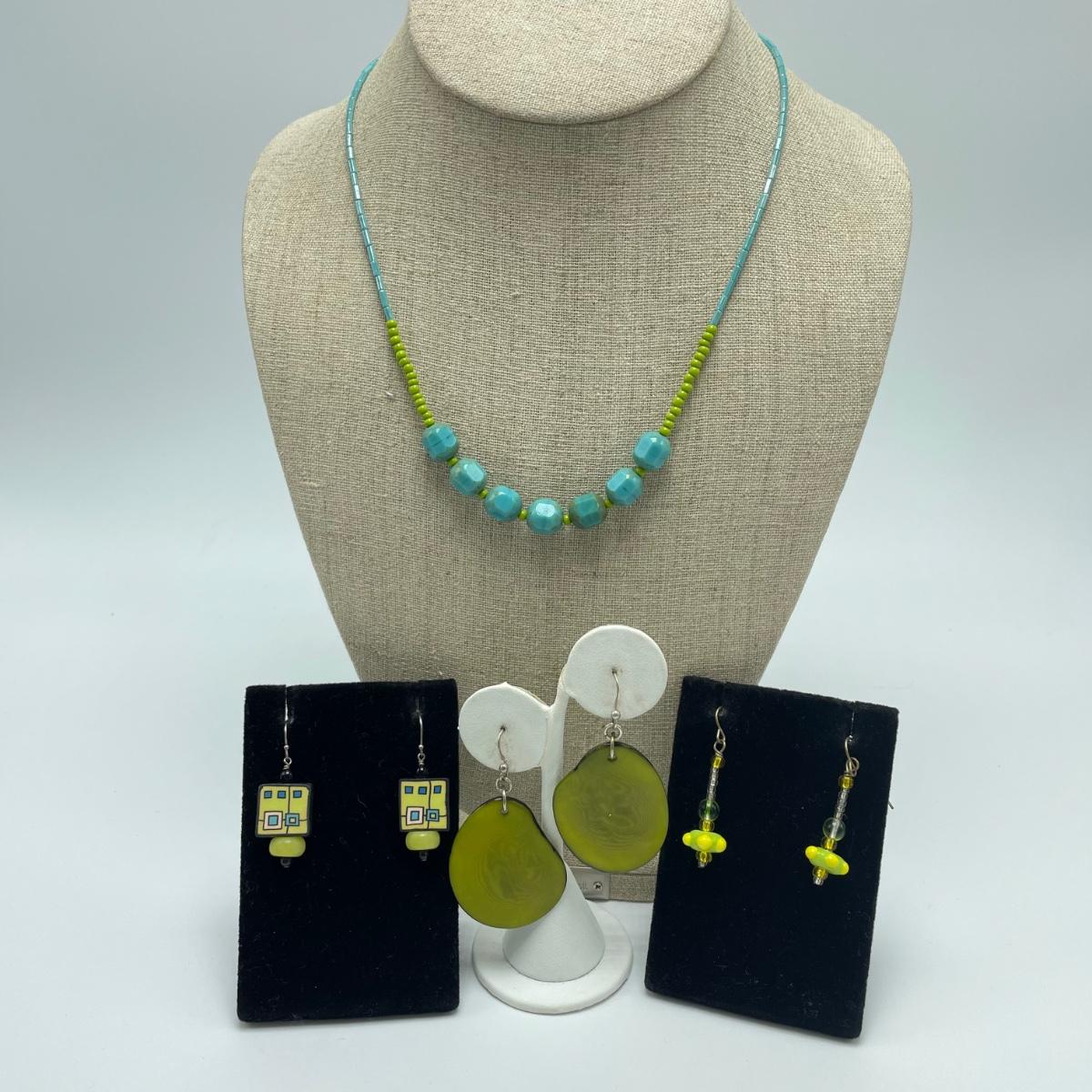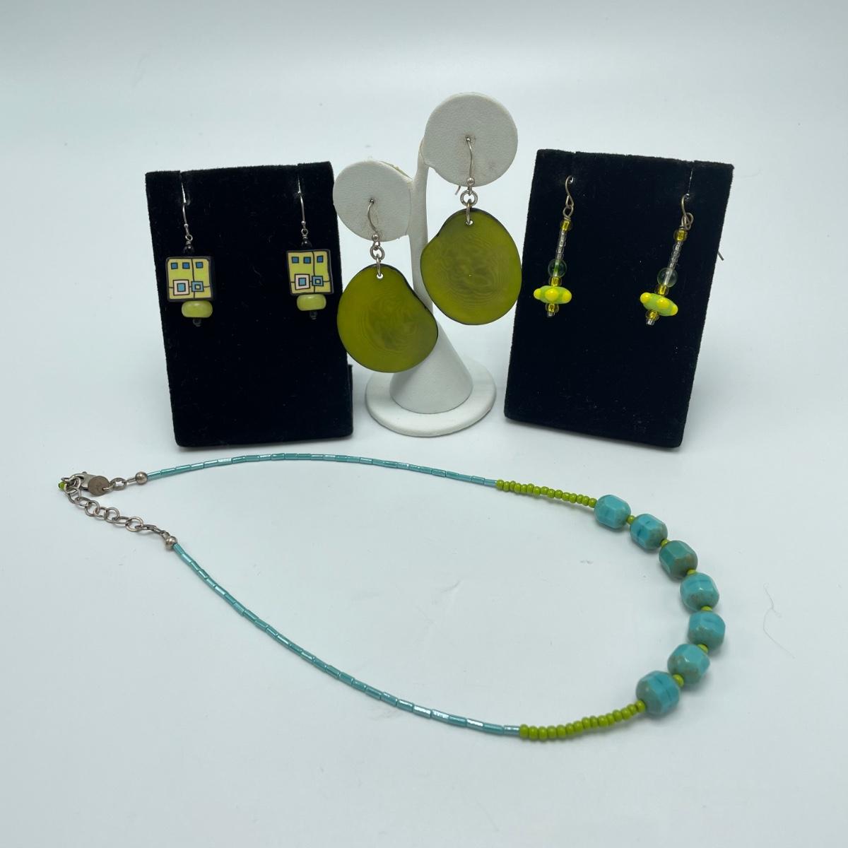 Brightly Colored Artisan Earrings & Necklace (SJJ - SS)