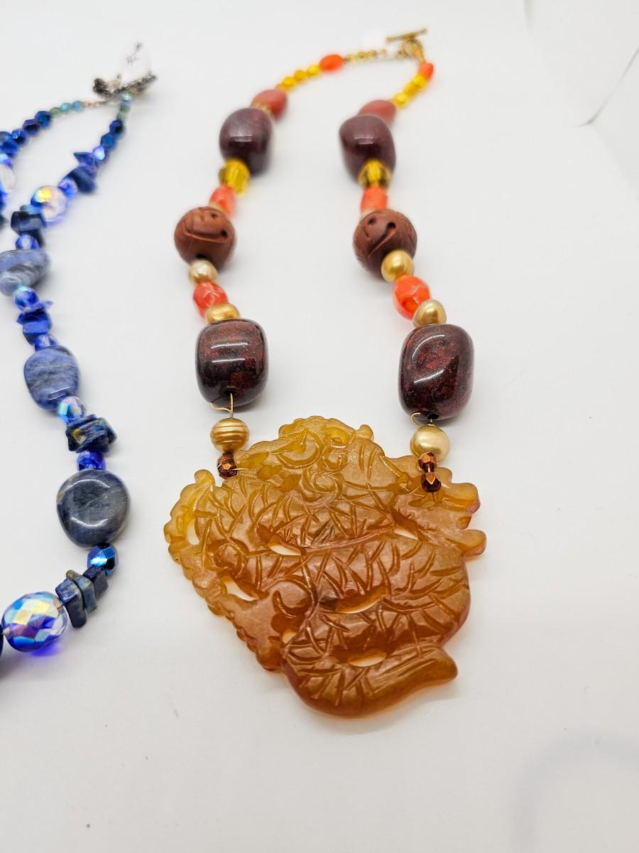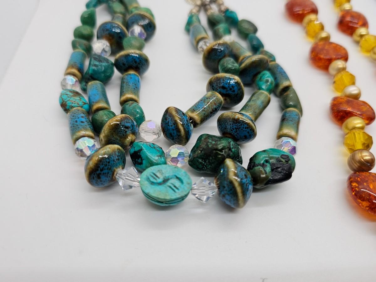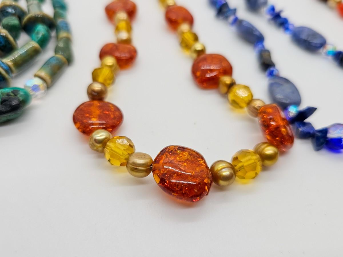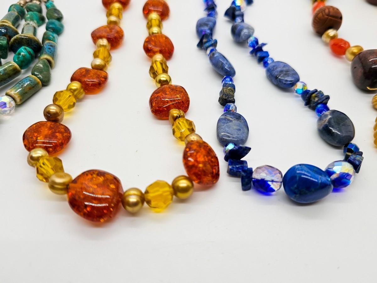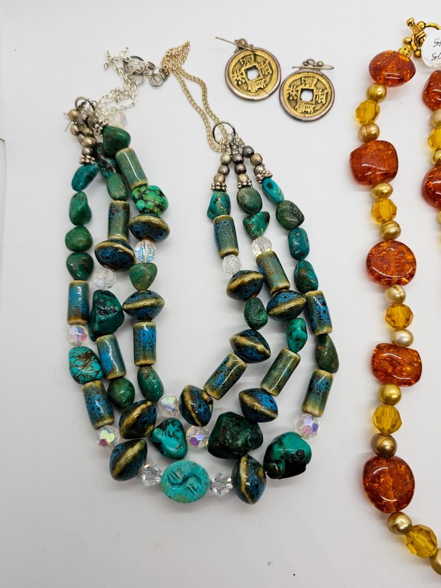 Artisan jewelry, made using various semi-precious stones and synthetic materials. Jewelry lots are stored in plastic bags and may be tangled.