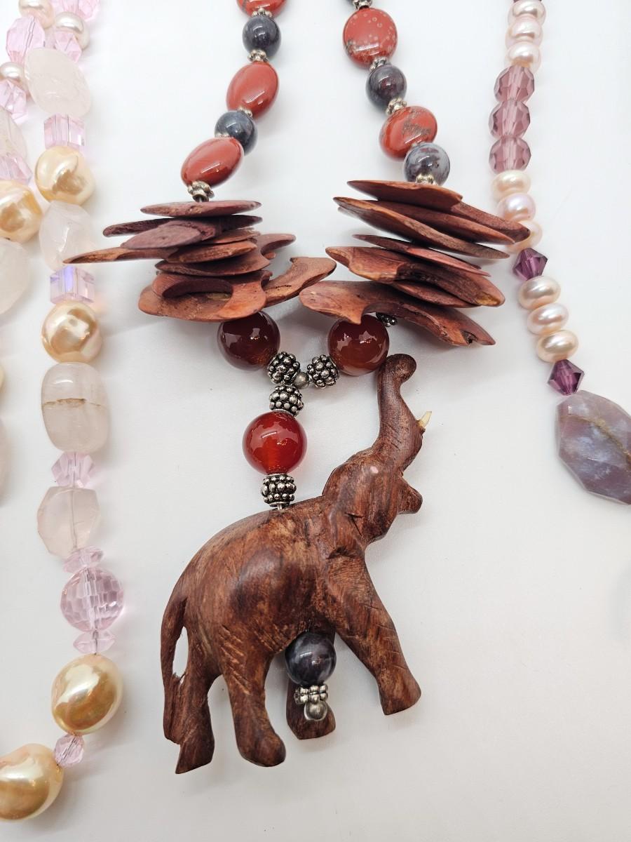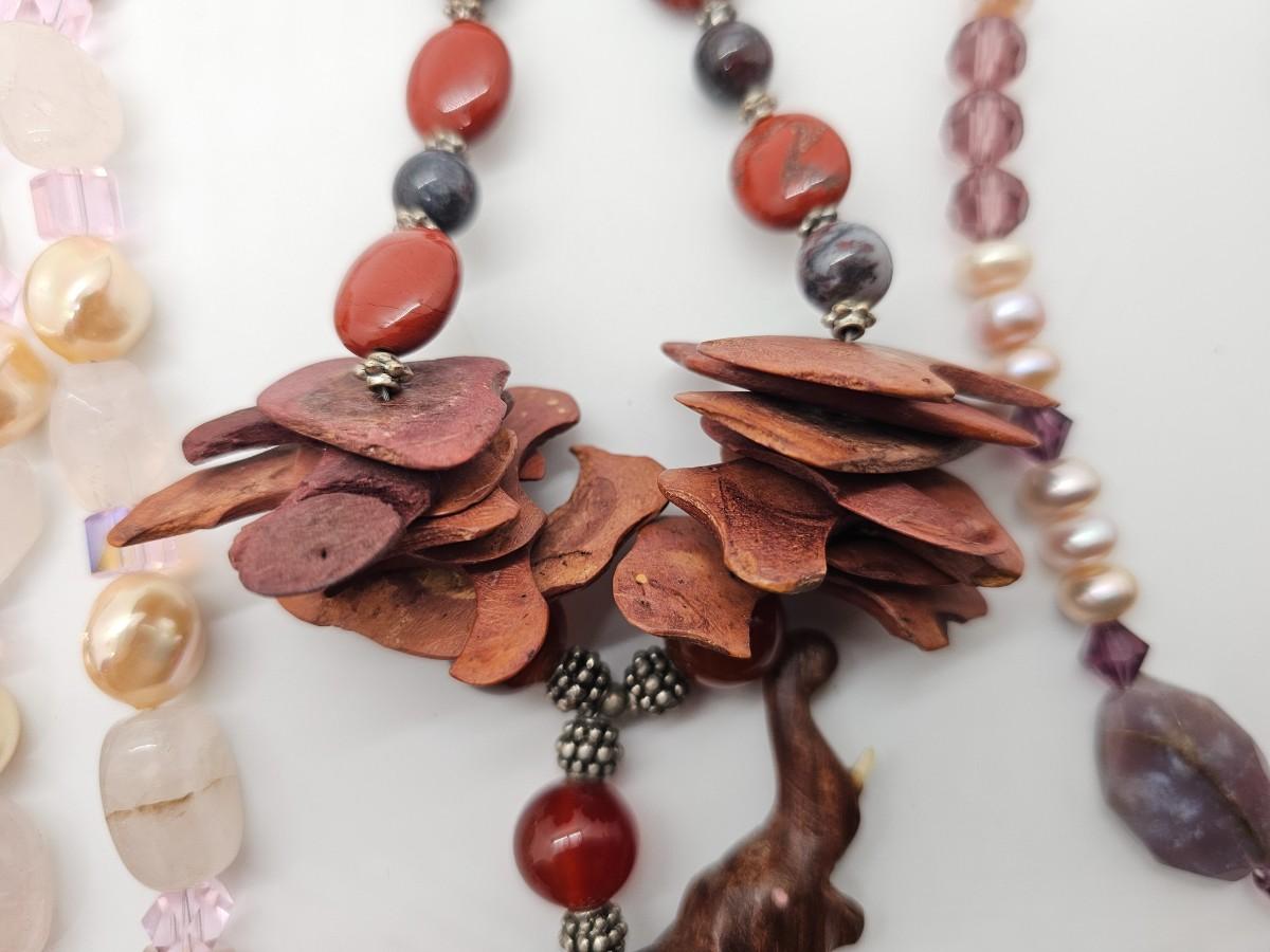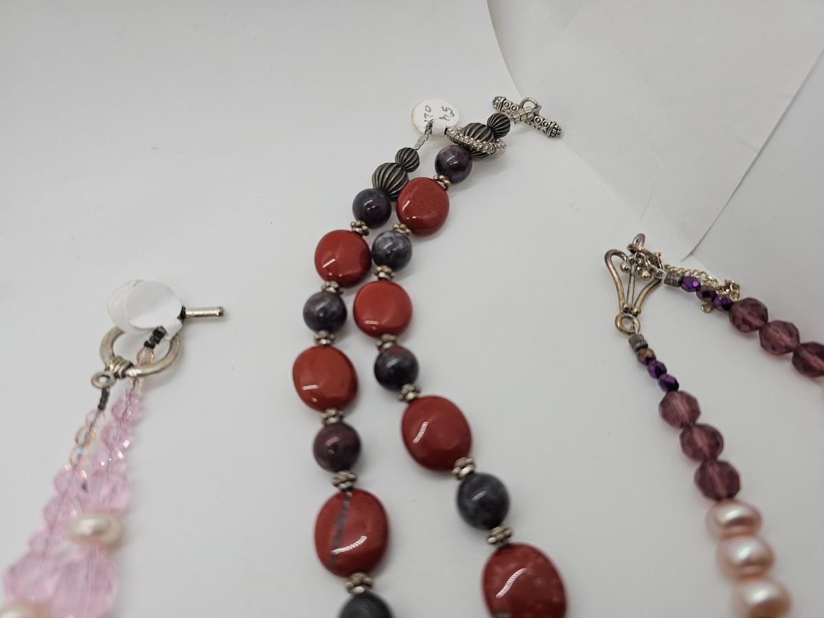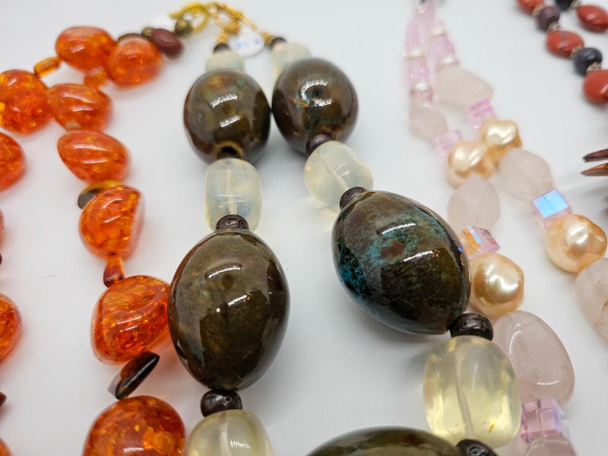 Artisan jewelry, made using various semi-precious stones and synthetic materials. Jewelry lots are stored in plastic bags and may be tangled.