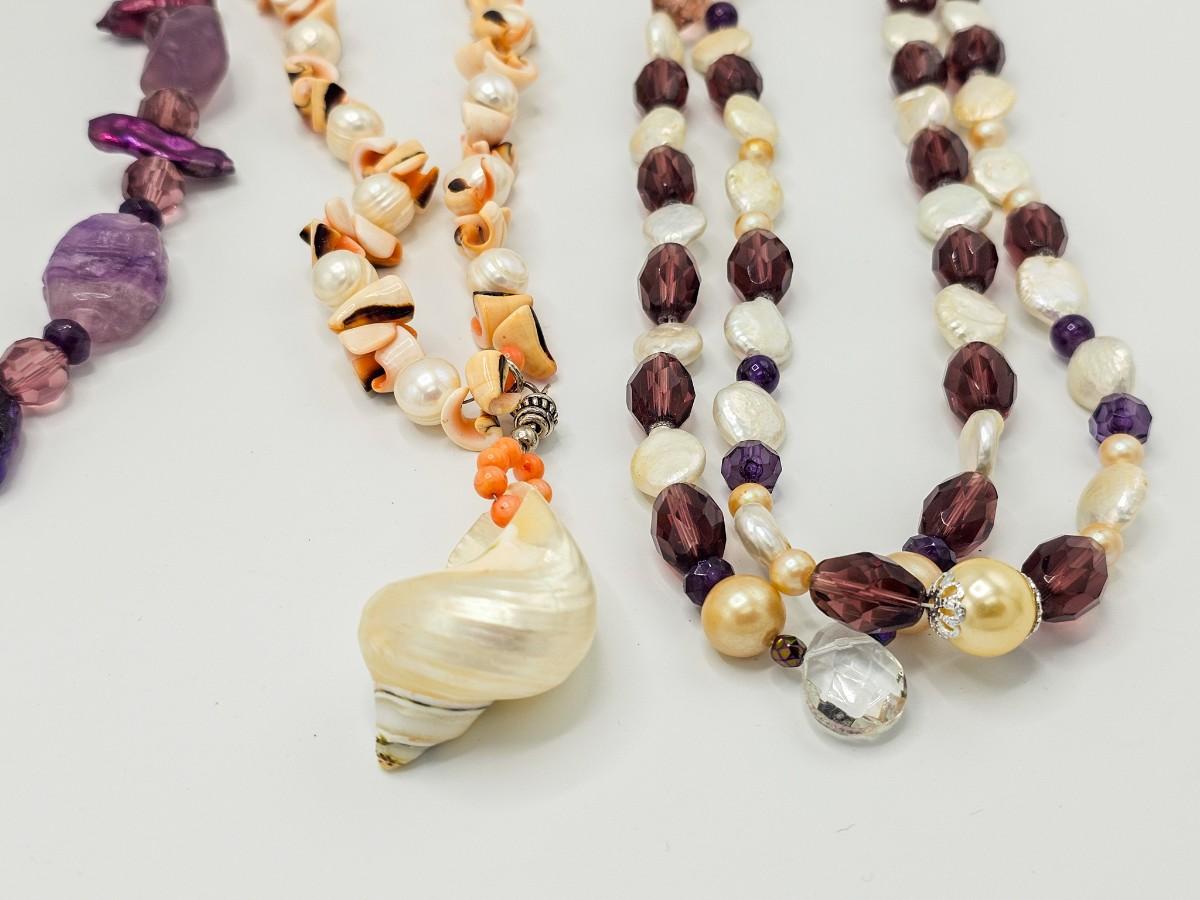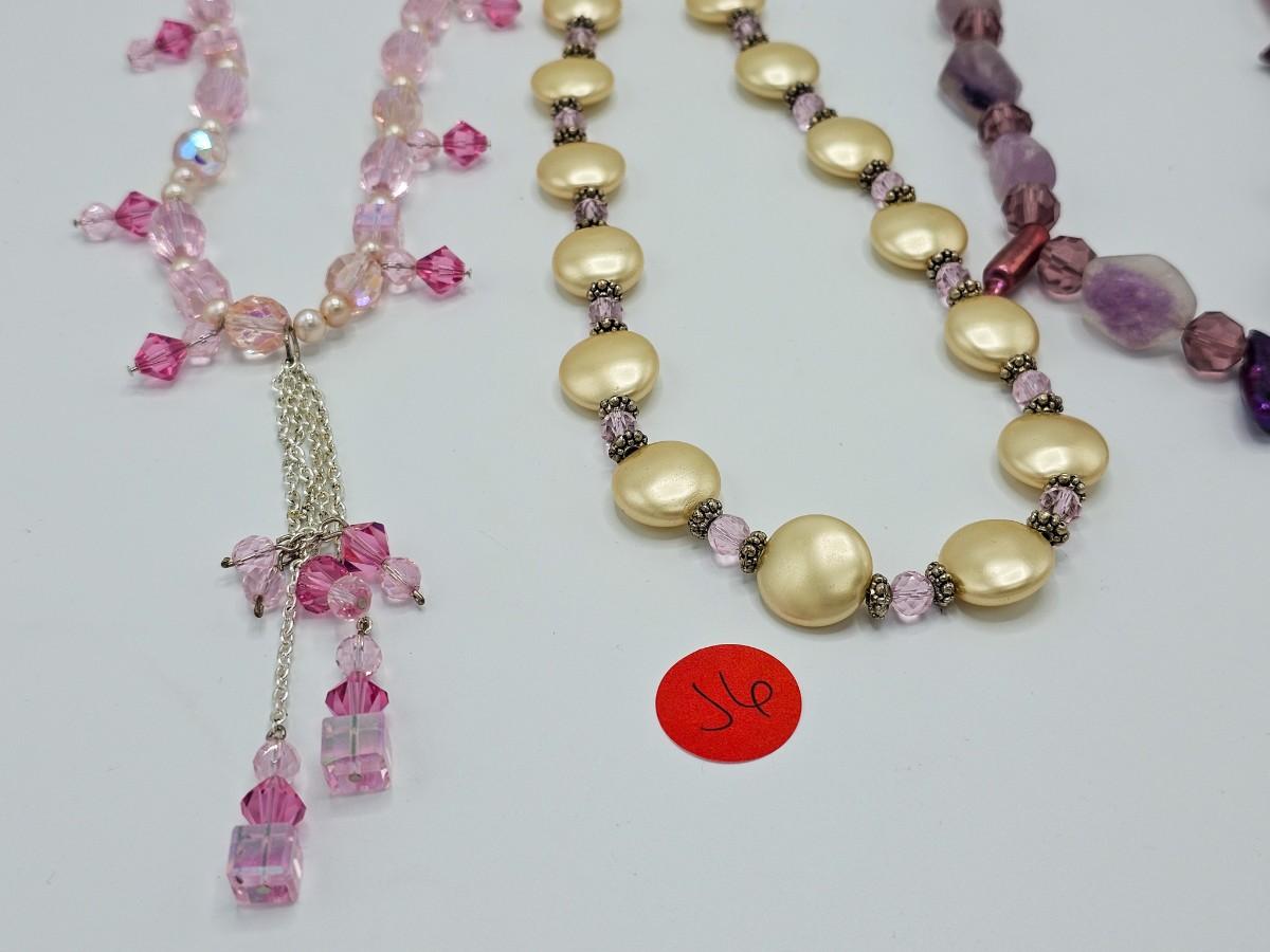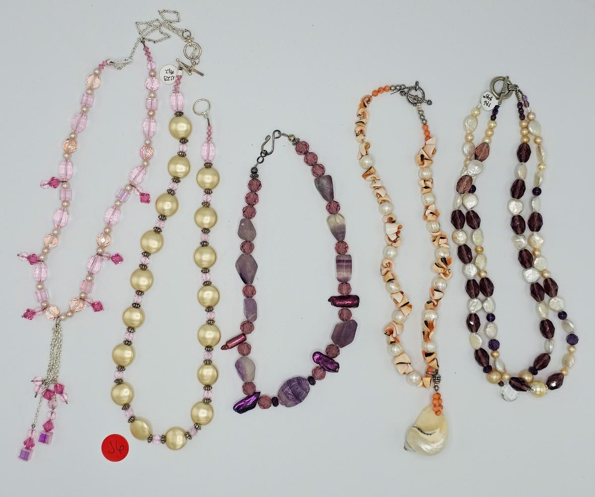 Artisan jewelry, made using various semi-precious stones and synthetic materials. Jewelry lots are stored in plastic bags and may be tangled.