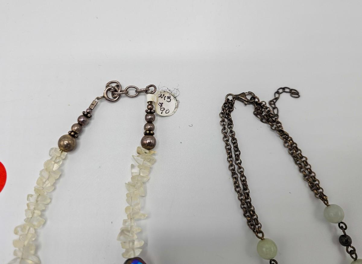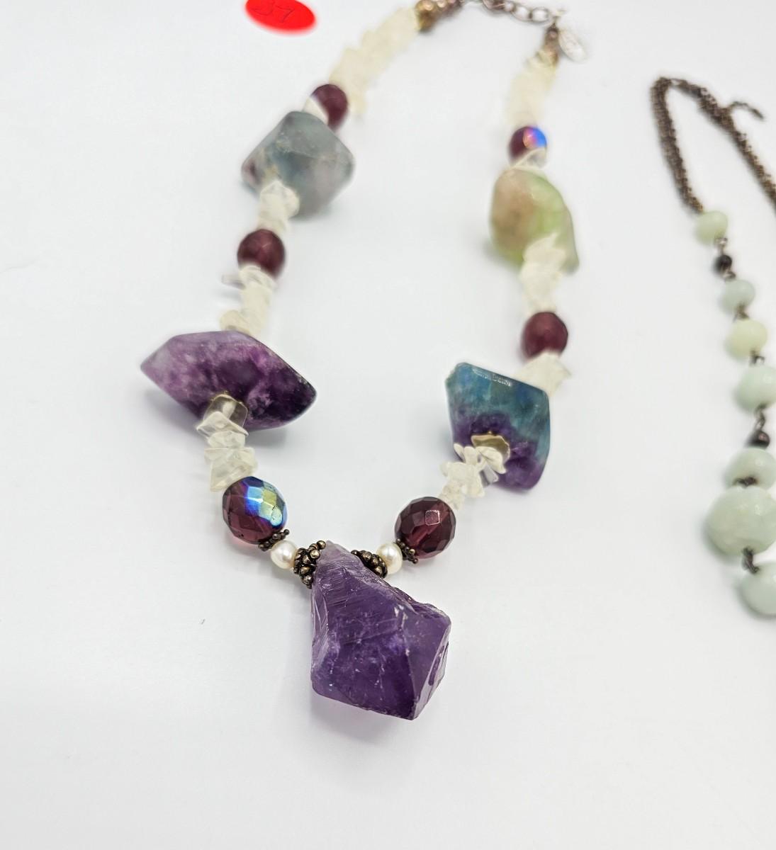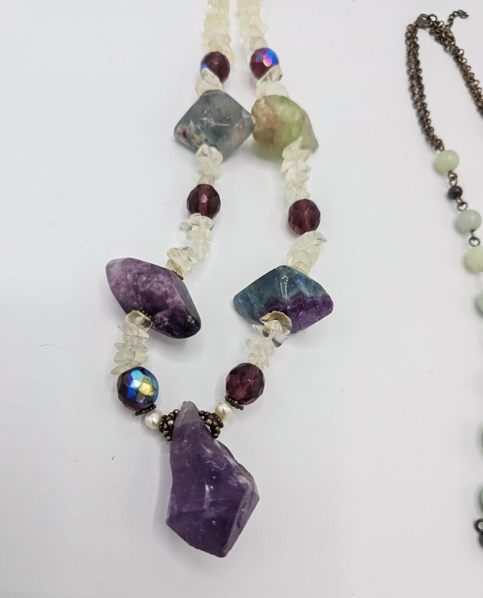 Artisan jewelry, made using various semi-precious stones and synthetic materials. Jewelry lots are stored in plastic bags and may be tangled.