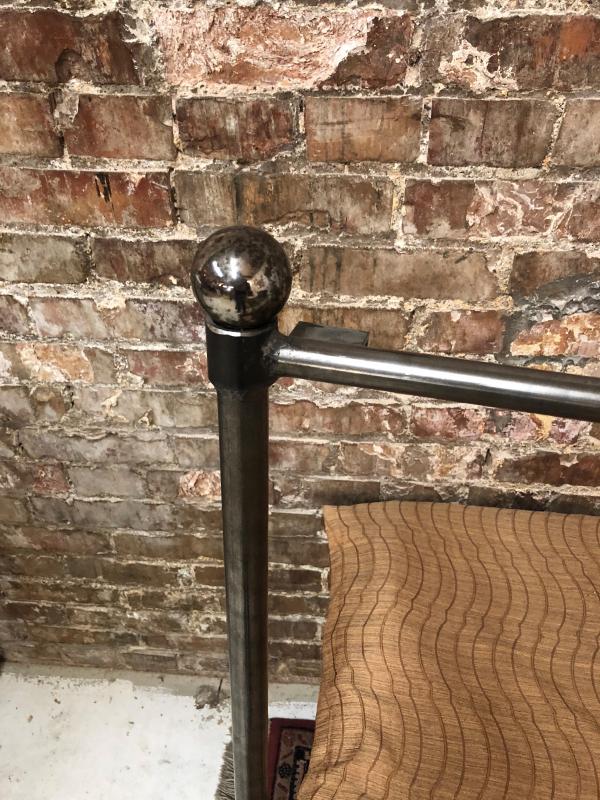 Hand made iron headboard wall mount will work with queen or full size bead. 62' by 44'.
