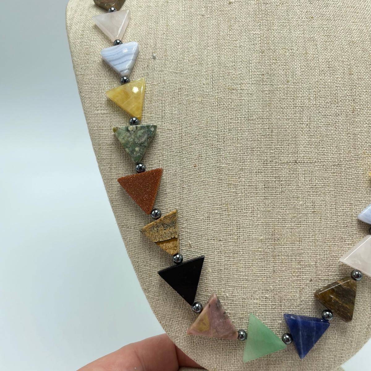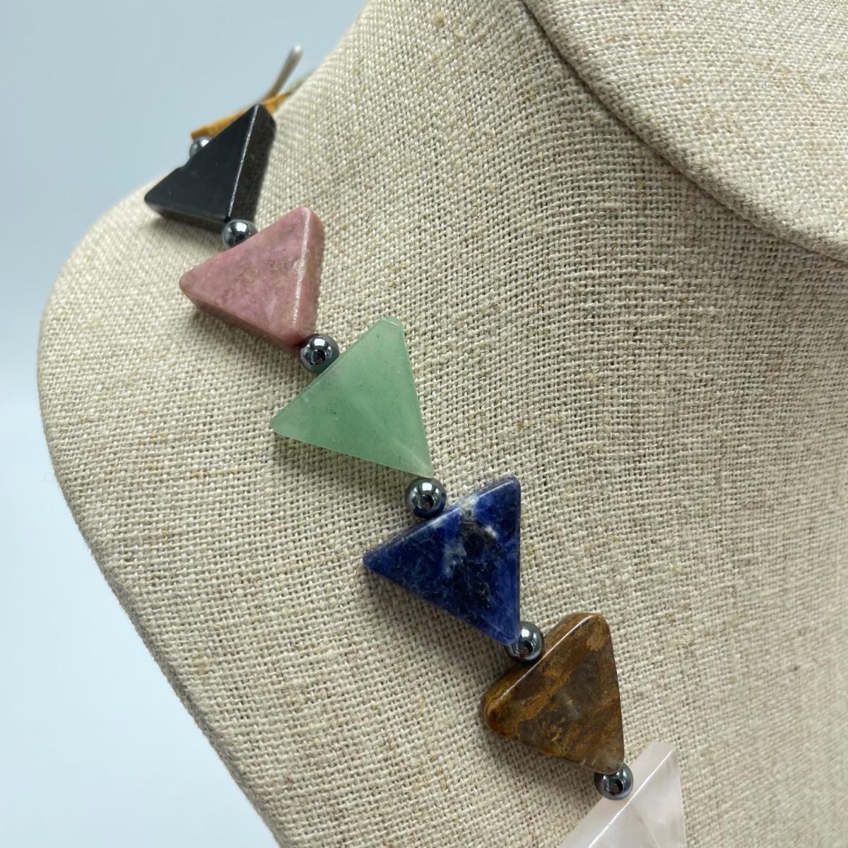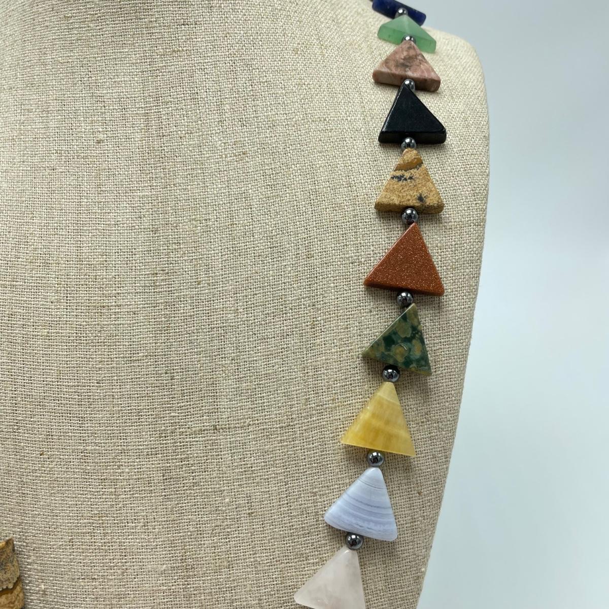Lovely heavy weight triangles that appear to be a mix of natural and human made materials. See images. No markings were found. Shipping available.