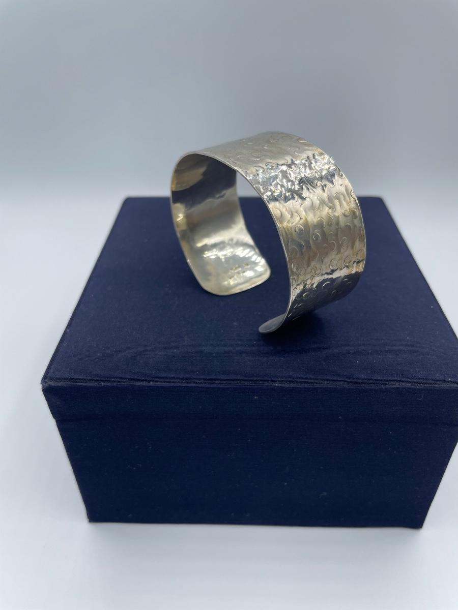 Signed “Sterling Gary Blom” a MN jewelry artist. Approx 1 inch wide. Fits average to larger size wrists.