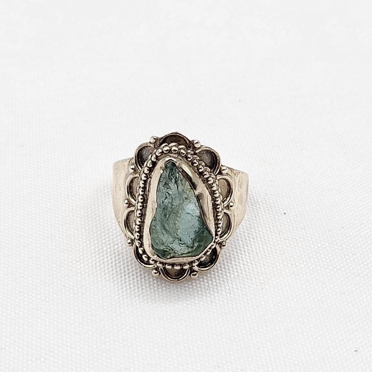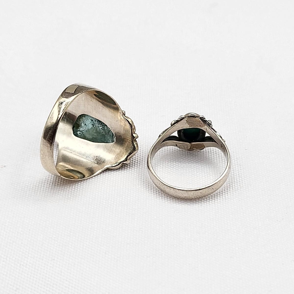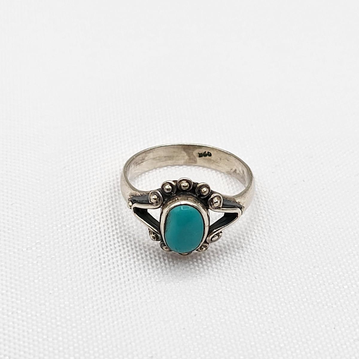 Hand made light blue Tourmaline 'inthe rough' ring, stamped 925 and is a size 10. Very comfortable on finger. OOAK artisan forged ring. Petite, oval cabochon Turquoise ring, size 5, 925 stamped. Total weight is 8.05 grams.