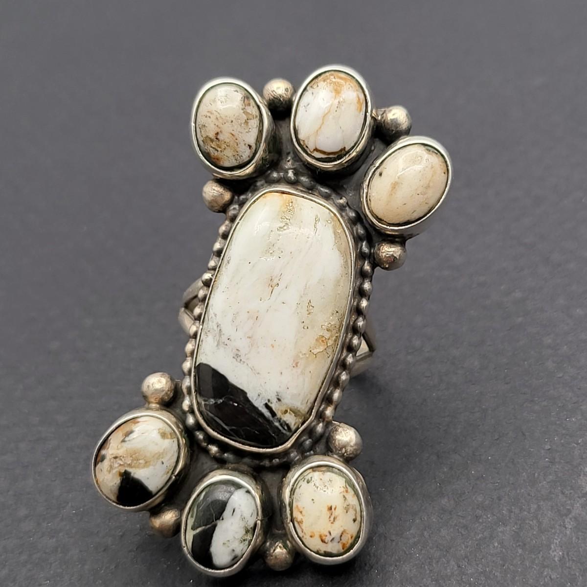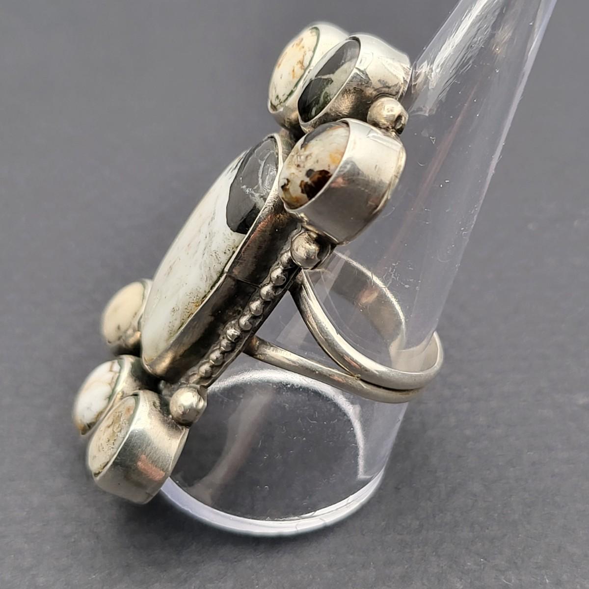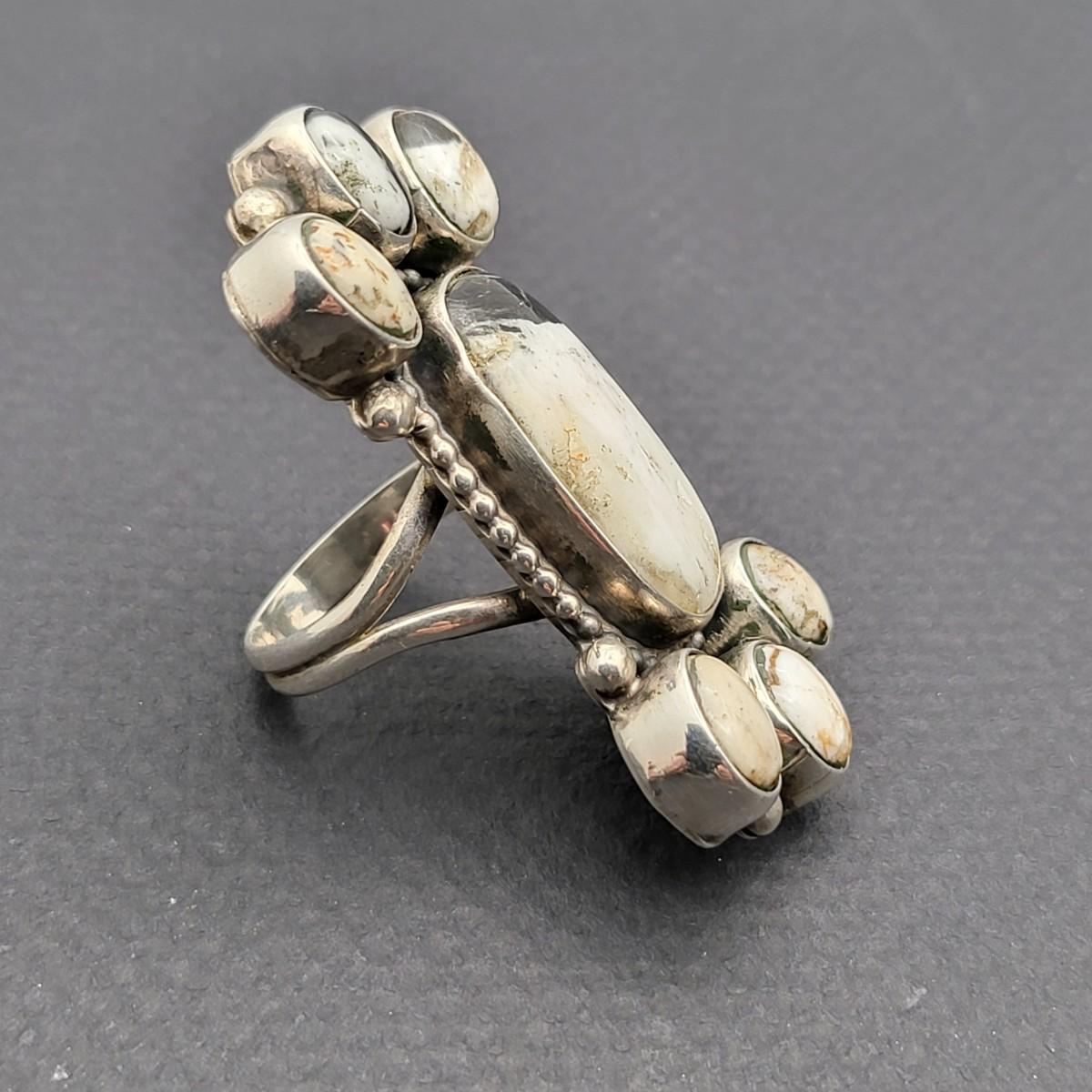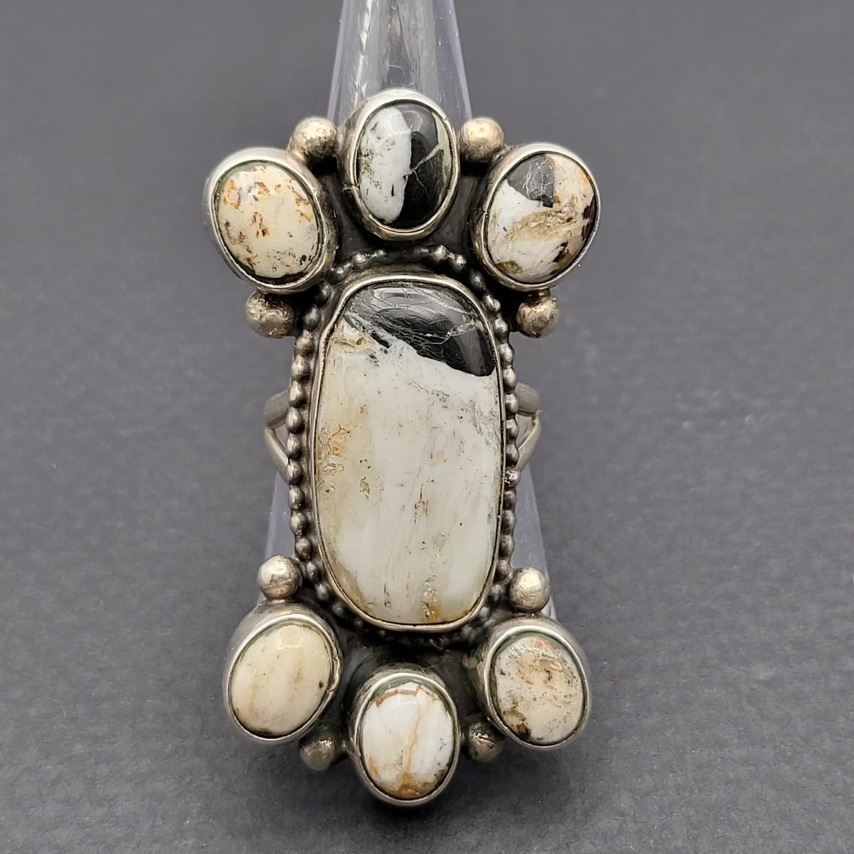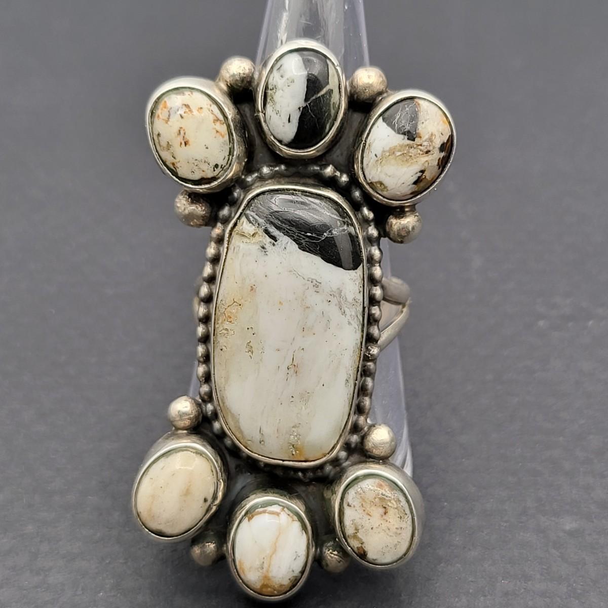 Designer Signed Artisan White Buffalo Sterling Silver Ring