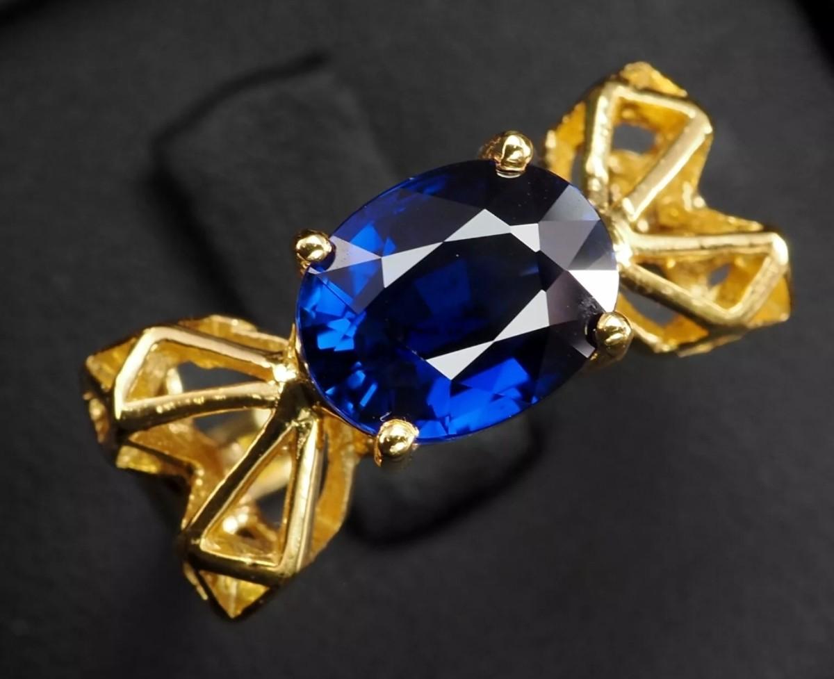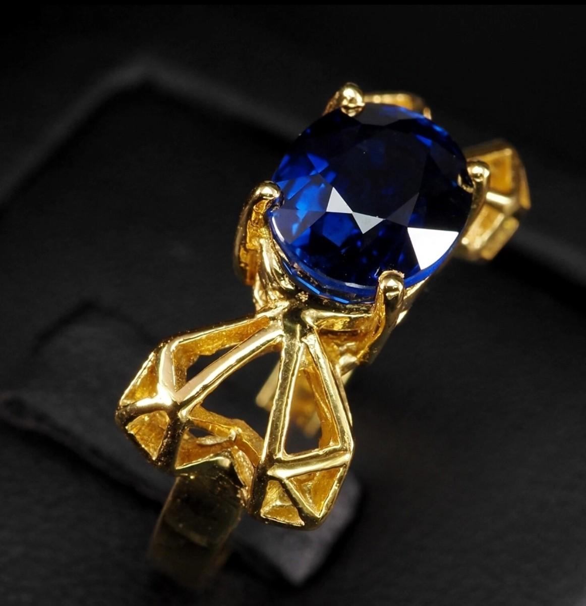 Artisanal Navy Sri Lanka Blue Sapphire 2.56Ct 925 Sterling Silver Gold Vermeil Handcrafted Ring