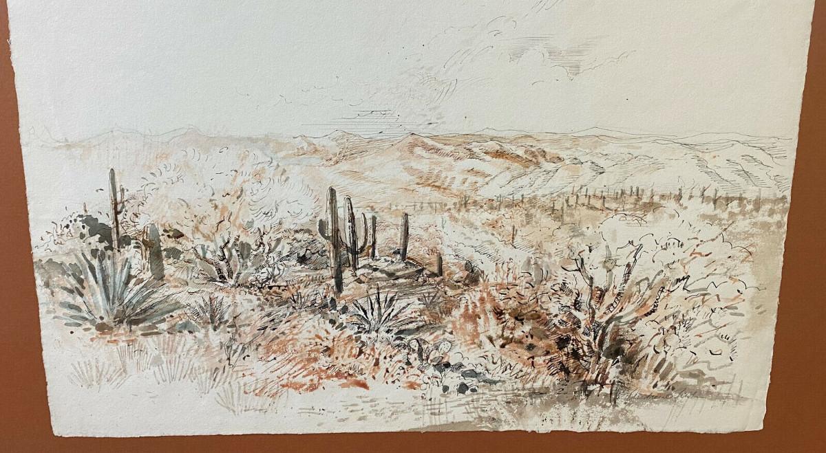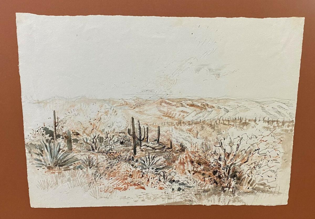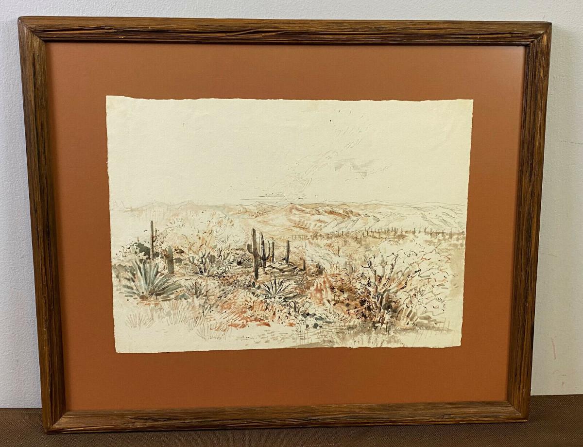 ARTIST ANDREW RUSH DRAWING & WATERCOLOR DESERT III signed original