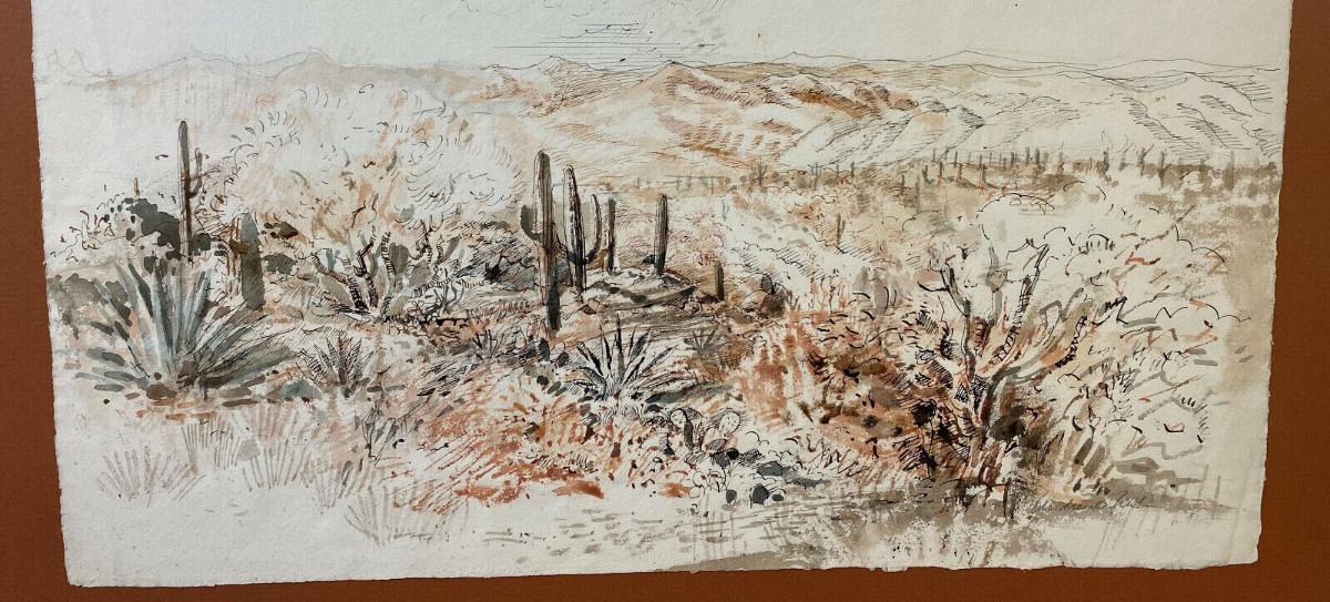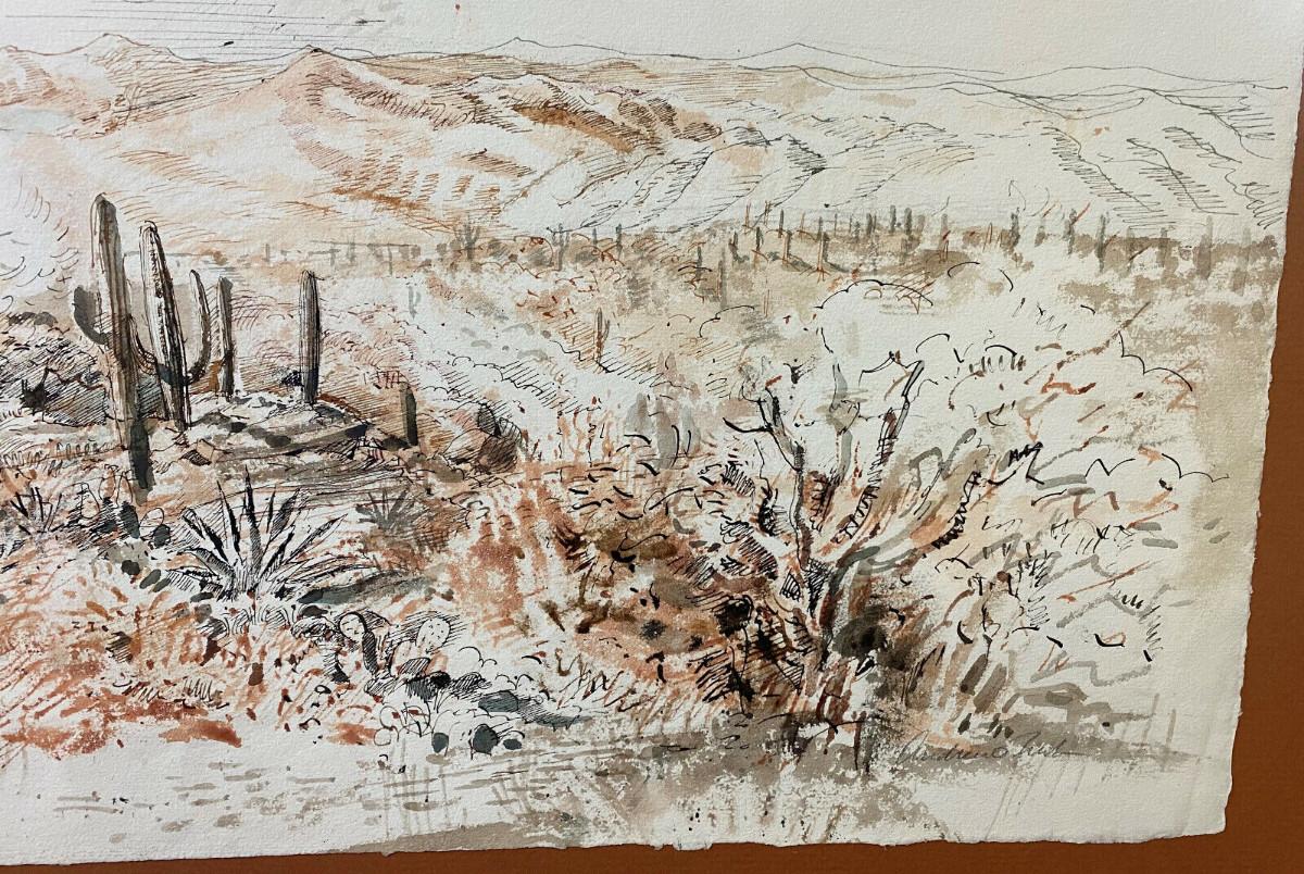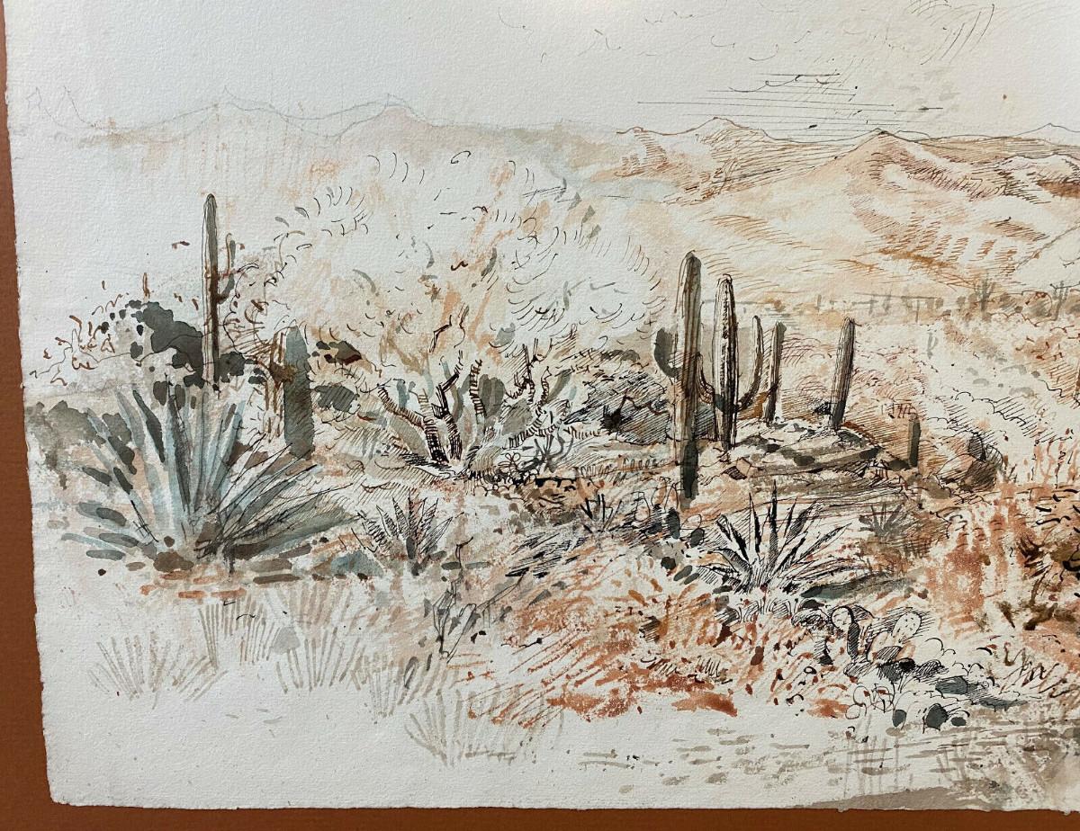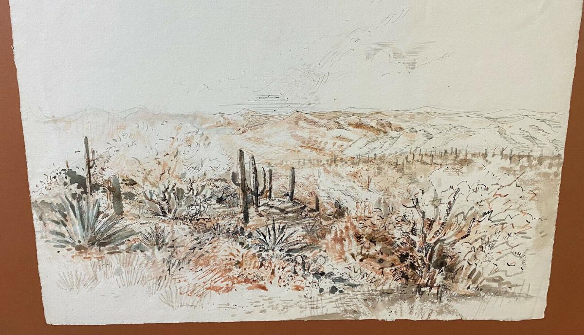 ARTIST ANDREW RUSH DRAWING & WATERCOLOR DESERT III signed original