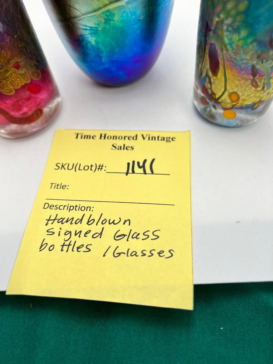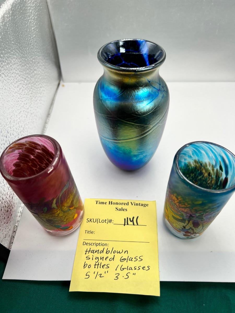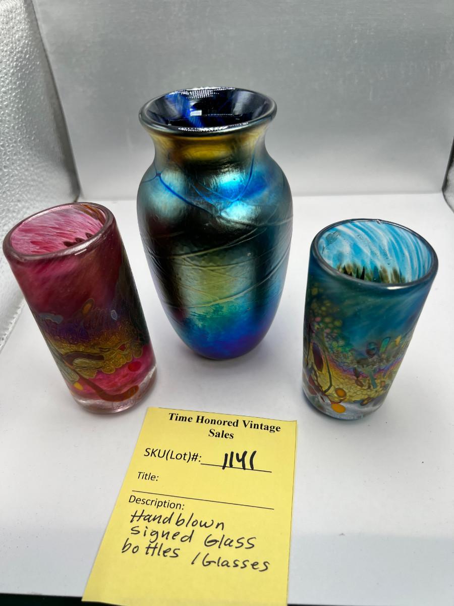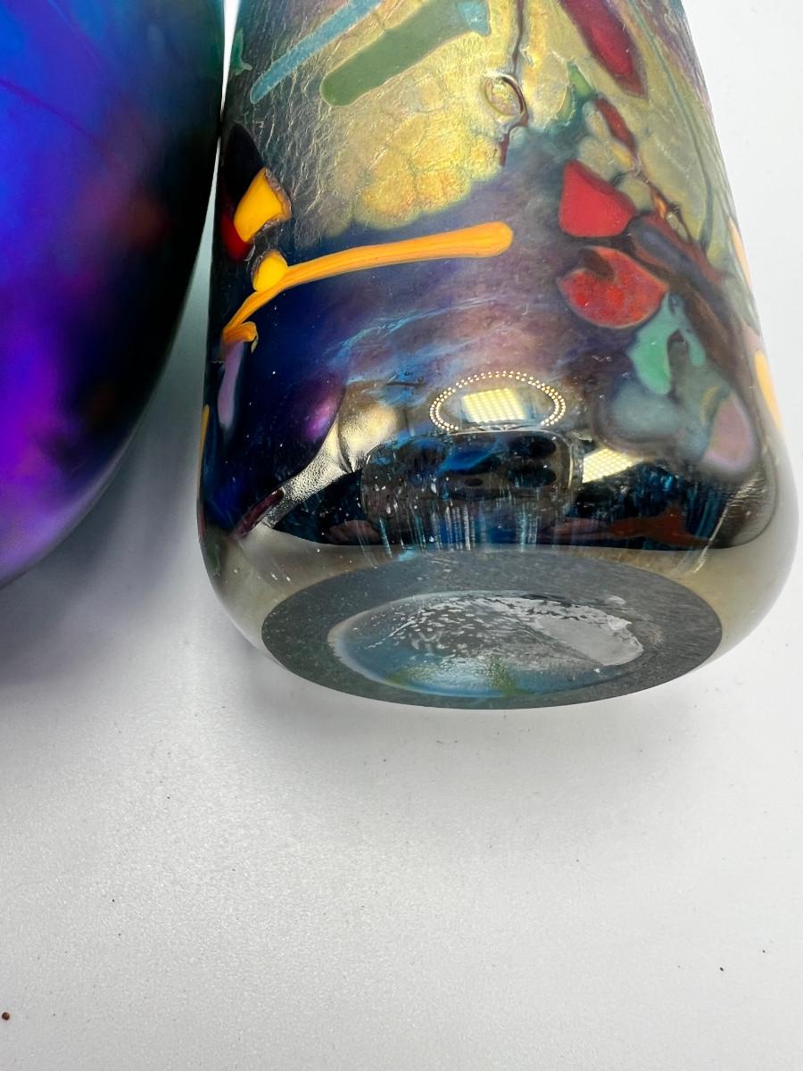 3 Iridescent Artist Hand Blown glass vessels with hallmark signature