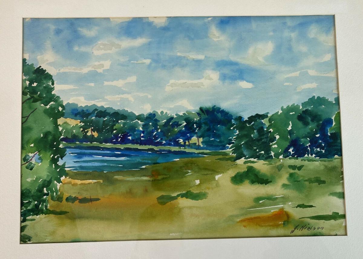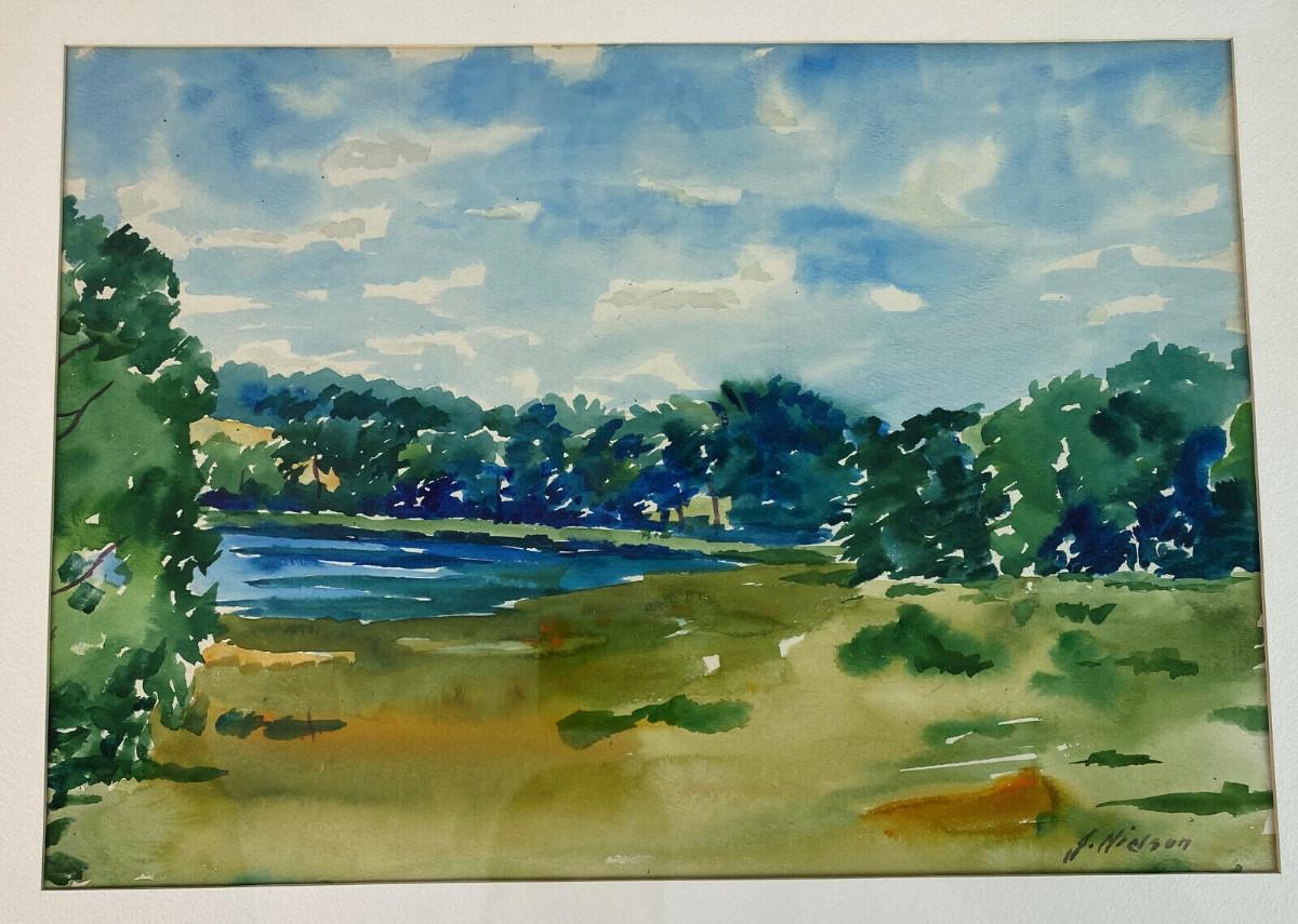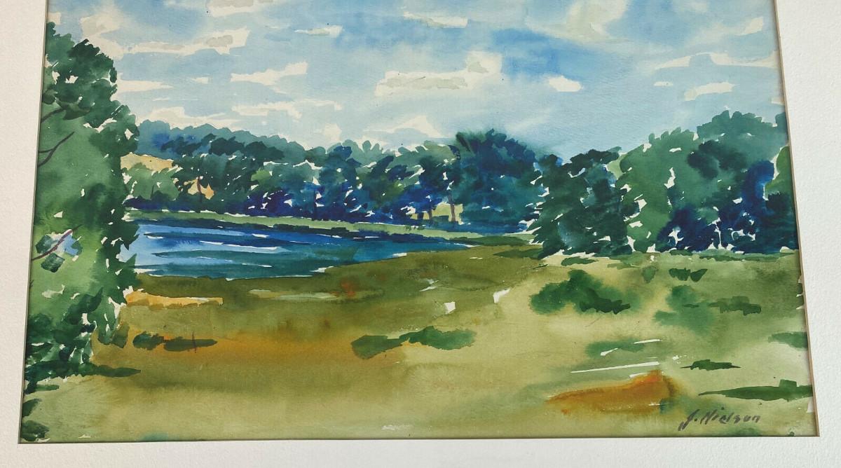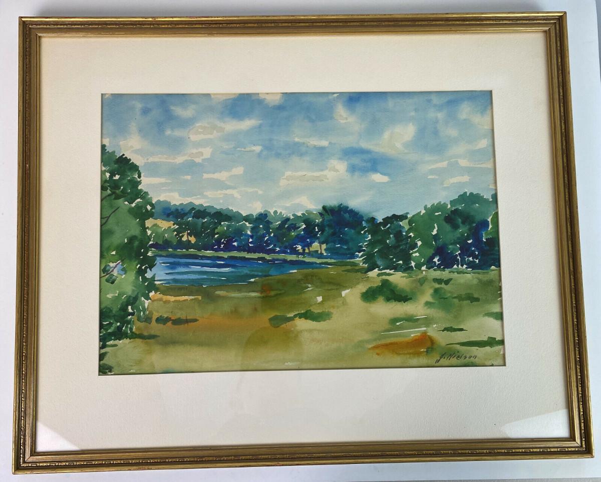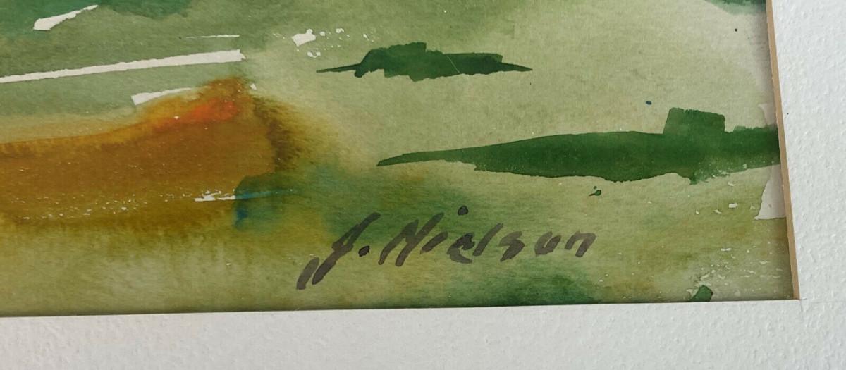 ARTIST J. NIELSEN WATERCOLOR LANDSCAPE signed original