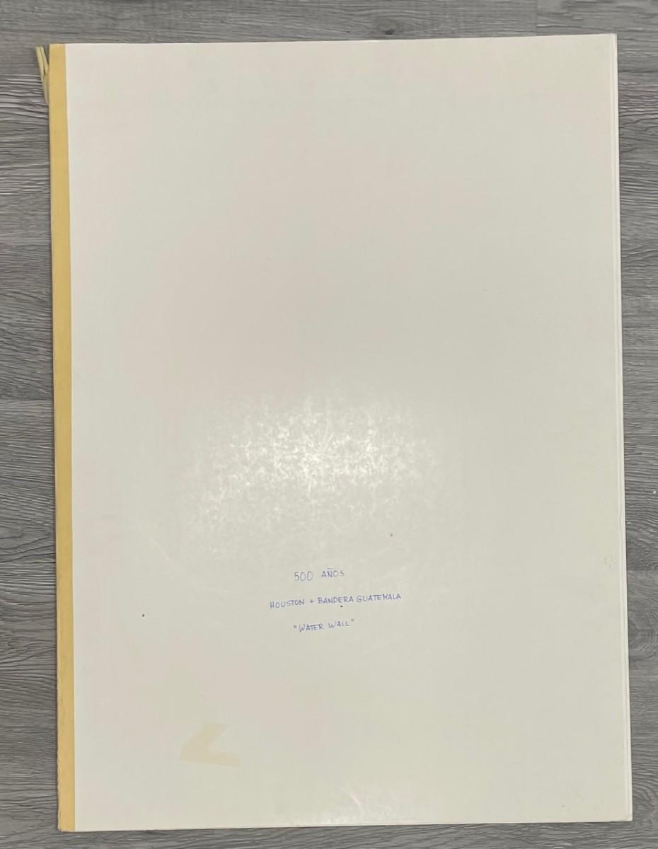 Description: ARTIST: LAINE VAIGUR 500 Anos Houston + Bandera Guatemala "Water Wall”/ Poster. Material : Water Color./ Measurement approx: 17 x 25 Inches.