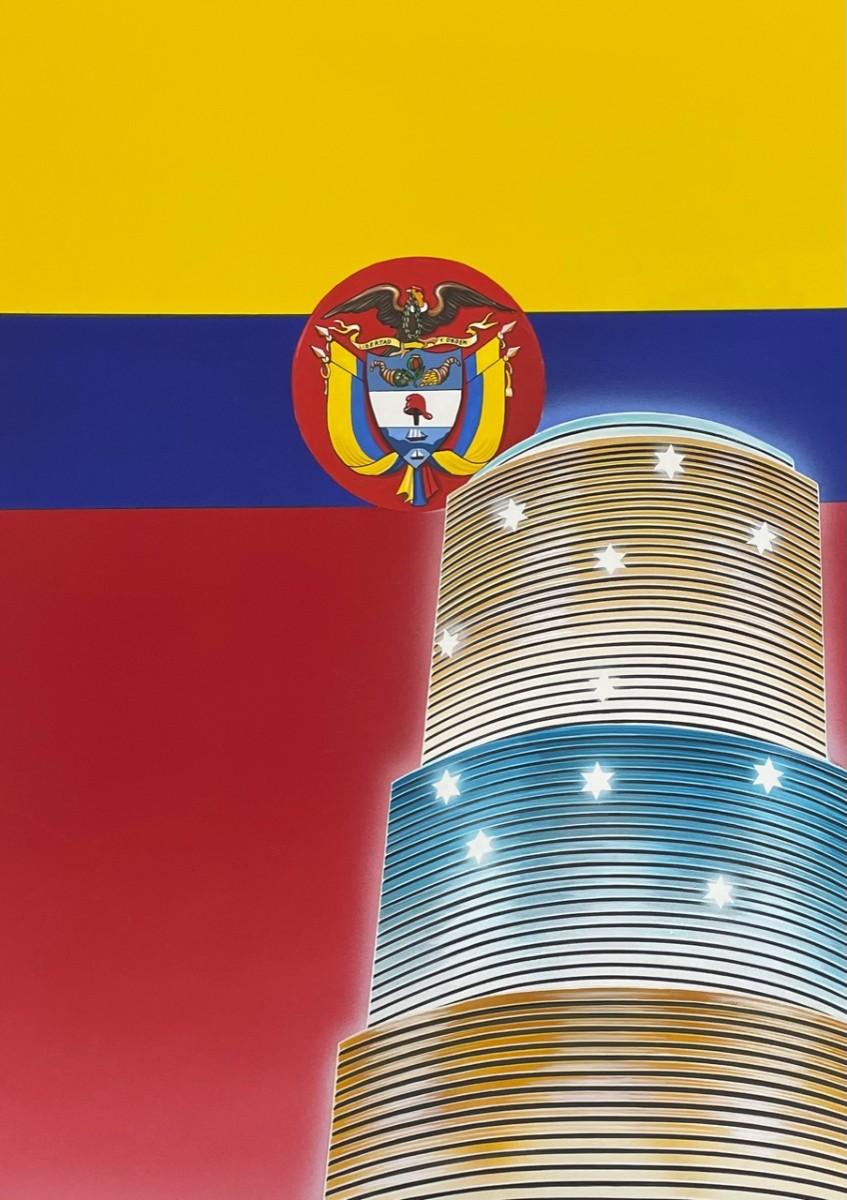 Description: ARTIST: LAINE VAIGUR/ 500 Anos Miami - Moral Collins Avenue + Bandera Argentina Poster. Material: Water Color. Measures approximately: 17 x 25 Inches.