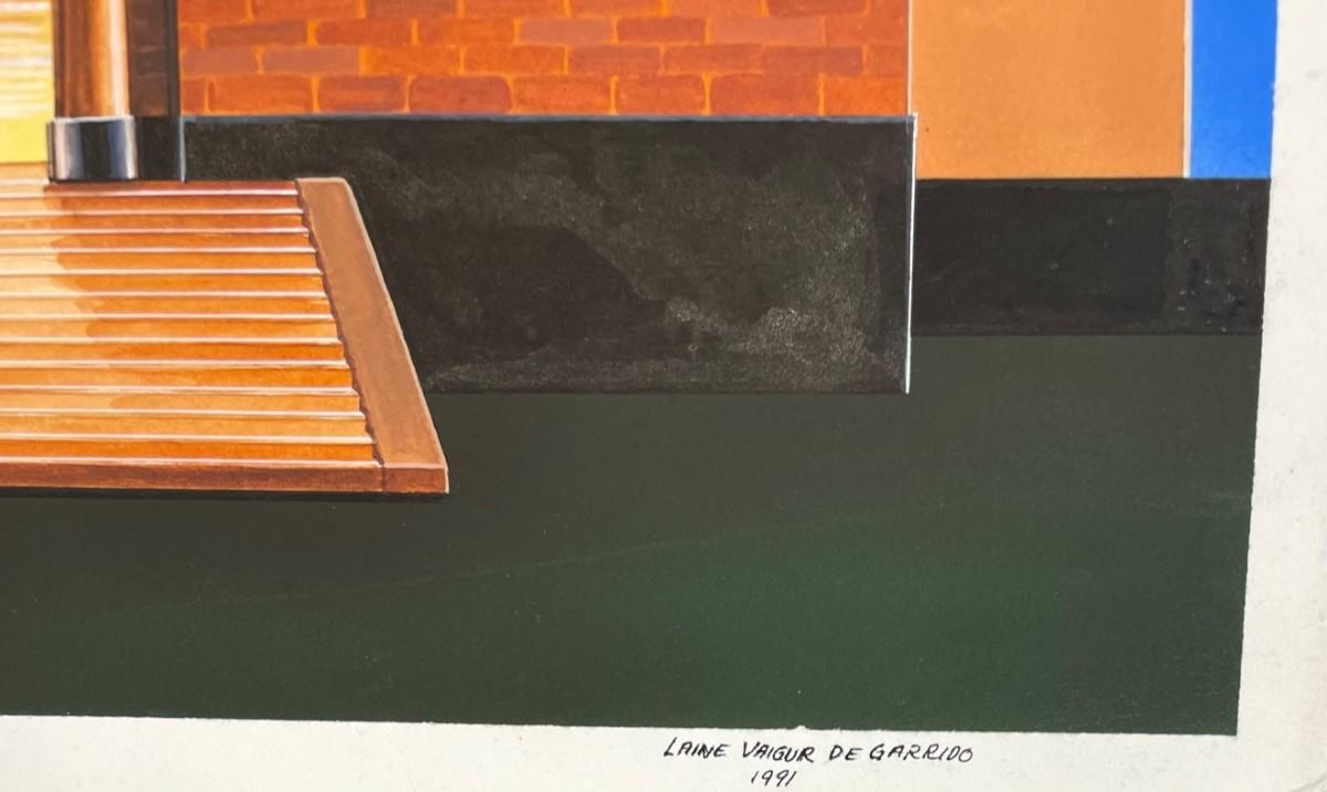 Description: ARTIST: LAINE VAIGUR 500 Anos Houston + Bandera Guatemala "Water Wall”/ Poster. Material : Water Color./ Measurement approx: 17 x 25 Inches.