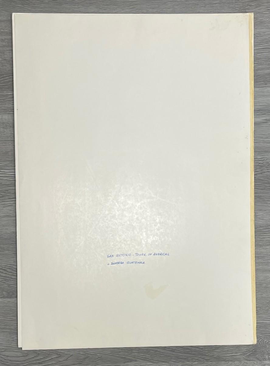 Description: ARTIST: LAINE VAIGUR / San Antonio - Tower of Americas + Bandera Guatemala. Material: Water Color. Measures approximately: 17 x 25 Inches