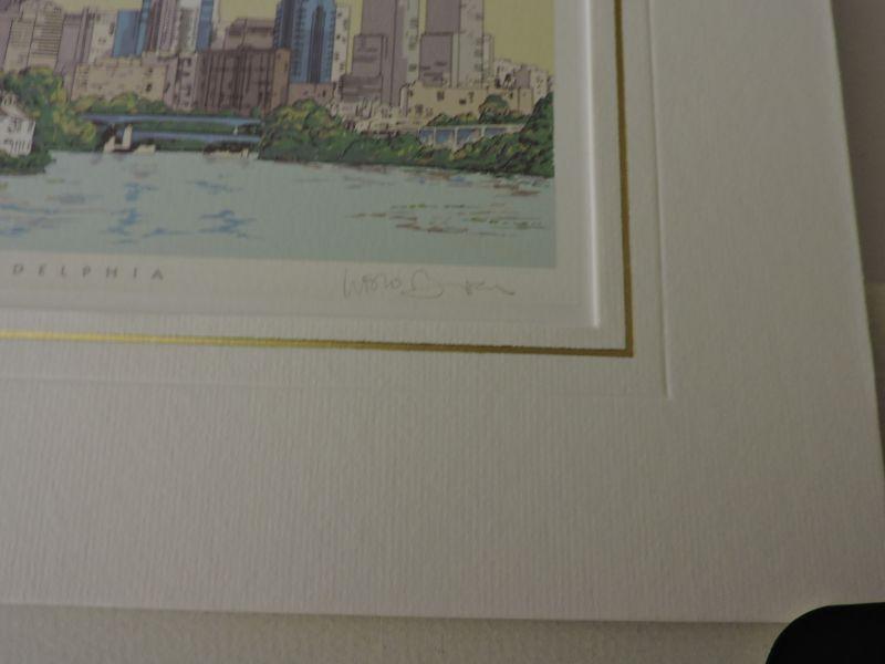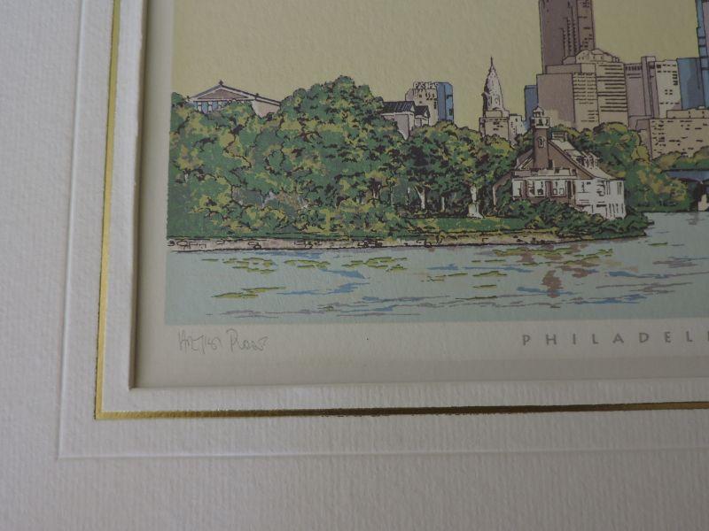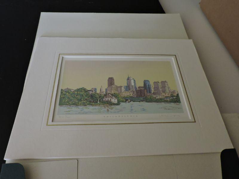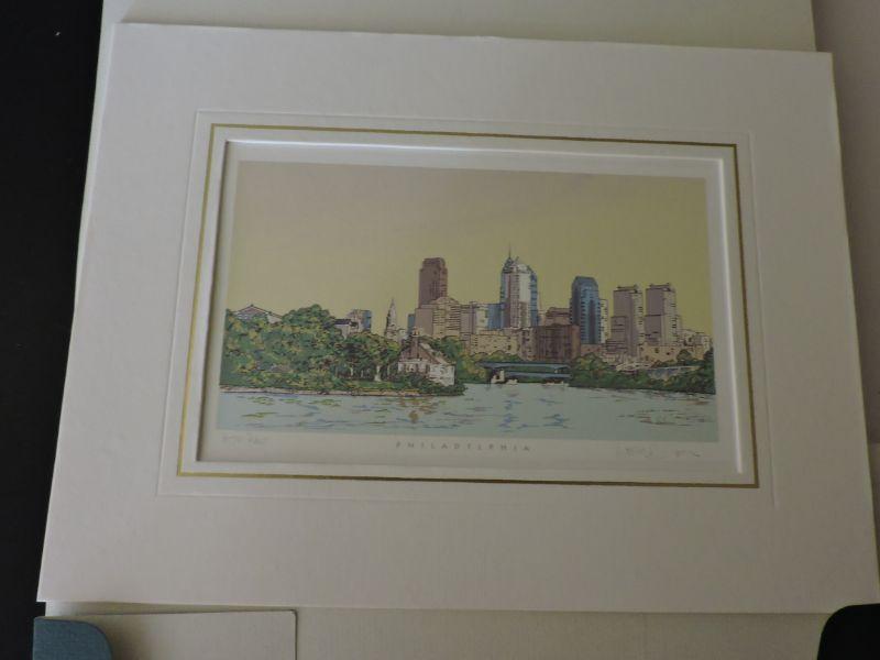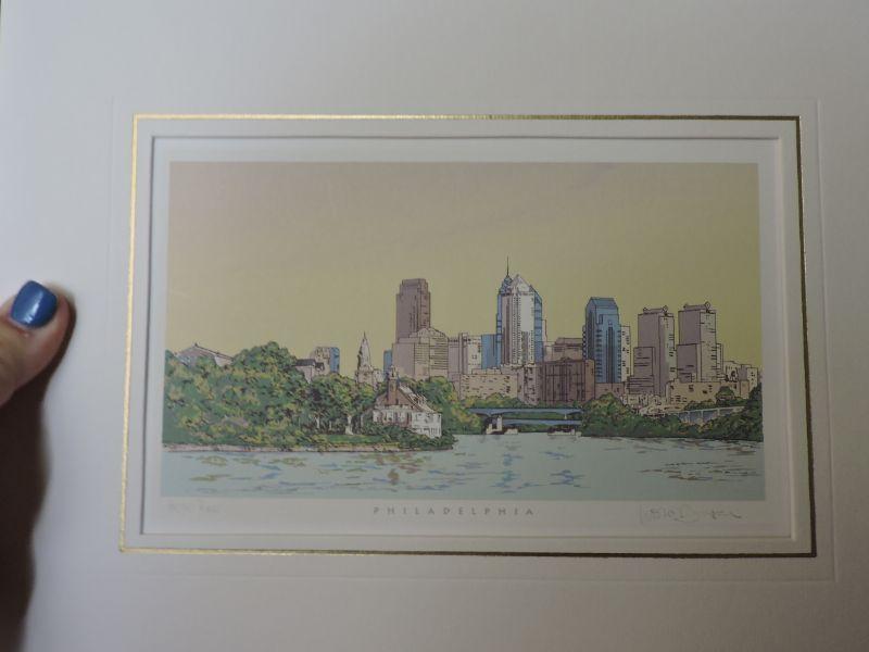 Artist Proof of Philadelphia skyline watercolor. **Please read Terms and Conditions before placing a bid. Pick up is Wednesday, September 25 from 4pm to 7pm and Saturday, September 28 from 9am to 1pm in Williamstown, NJ. All sales are final. All sales are as is, where is. Please review all photos. Any props included in photos are not included in listing. All measurements are approximate.