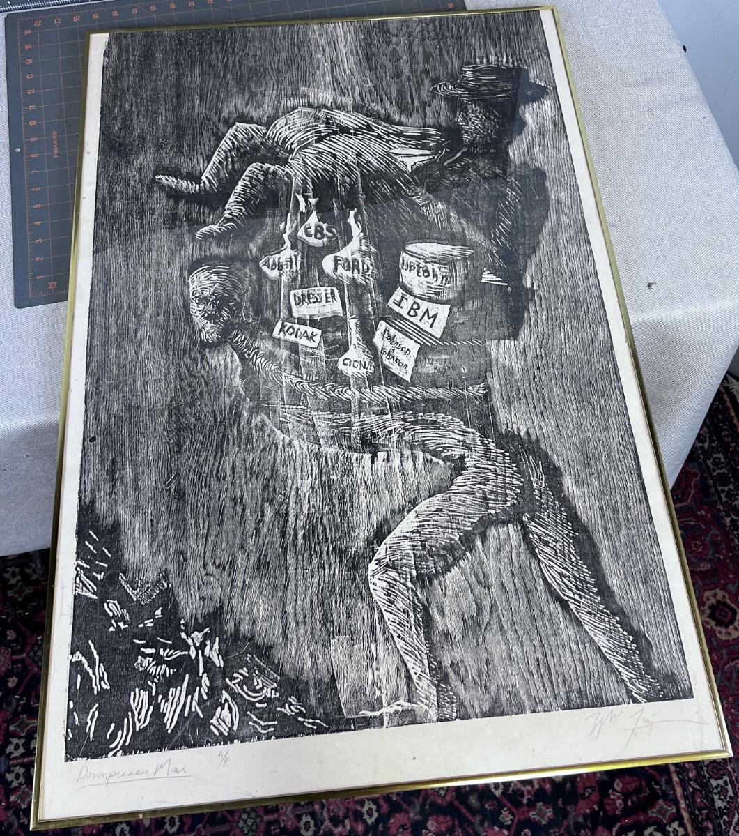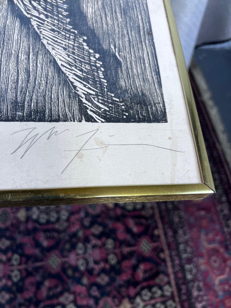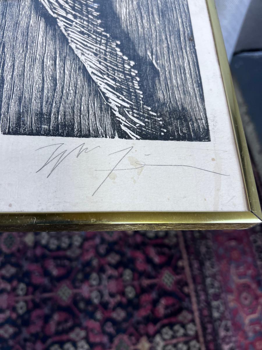 Has a real MCM feel to it. Frame Measures: 24 x 36 Singed William F“🦆 Probably a wood block print from the late 60's early 70's. Boxing Fee of $75 Plus Shipping charges.