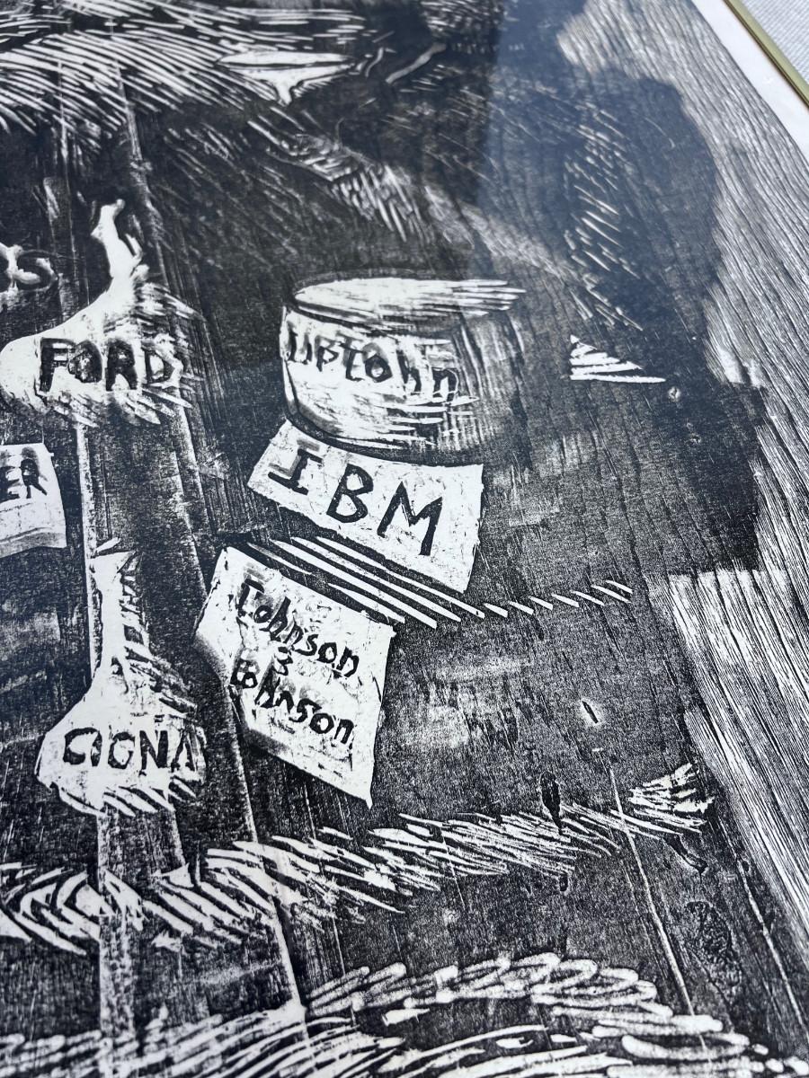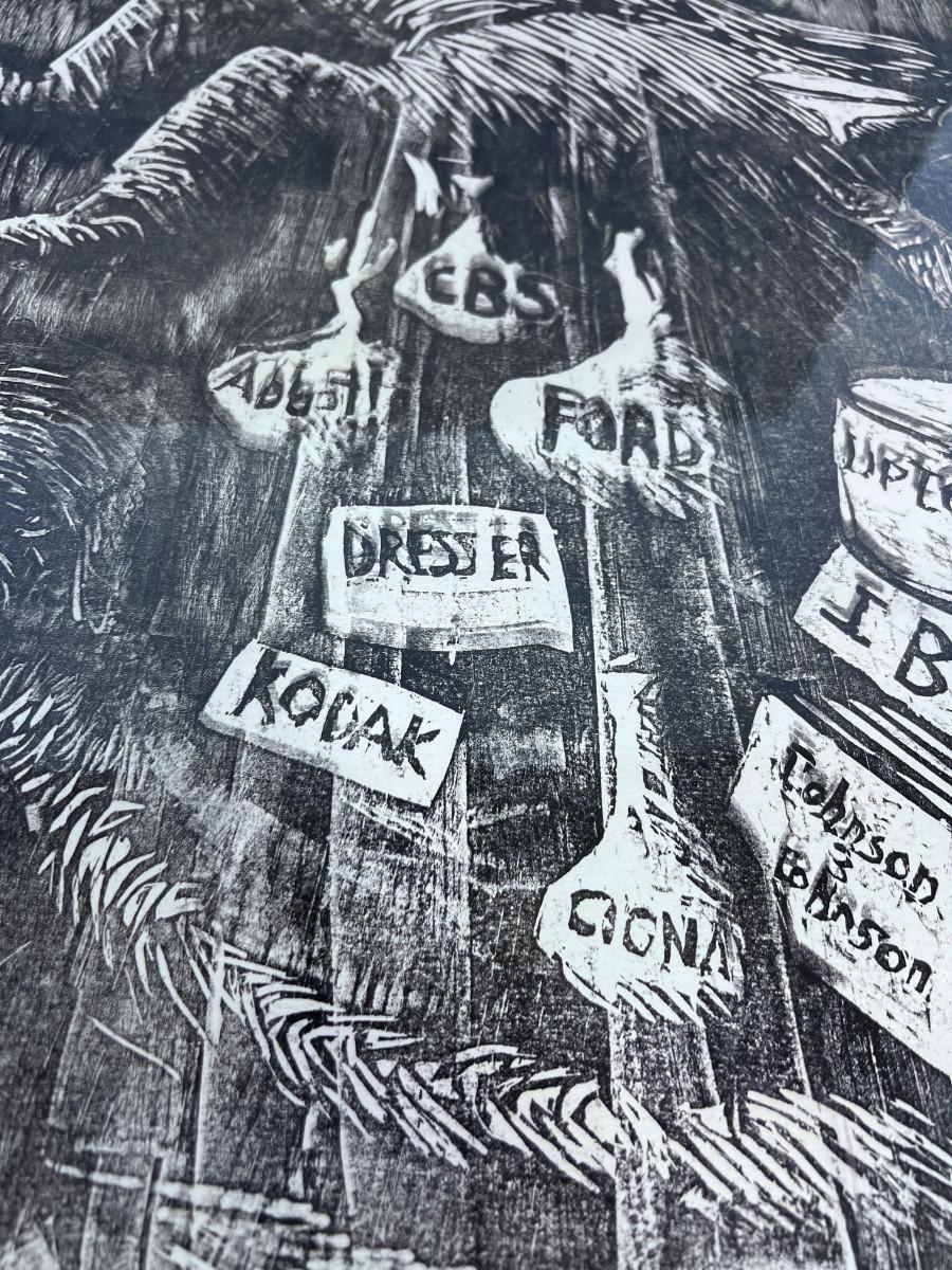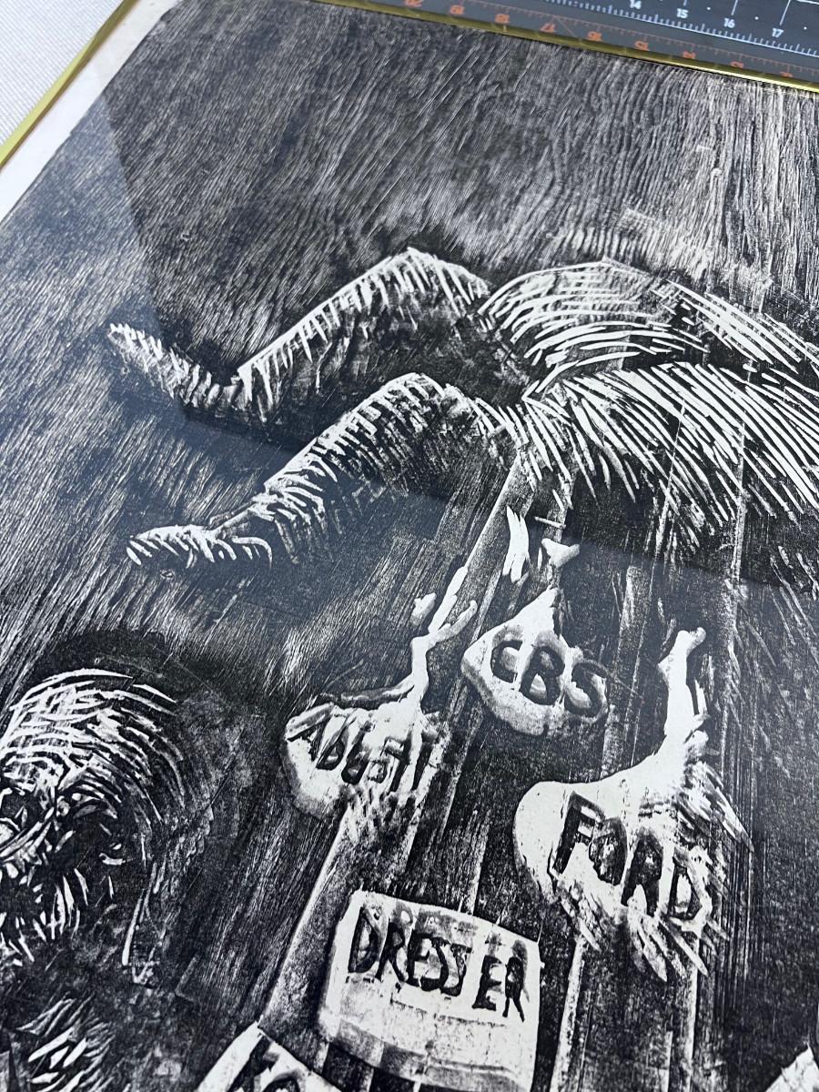 Has a real MCM feel to it. Frame Measures: 24 x 36 Singed William F“🦆 Probably a wood block print from the late 60's early 70's. Boxing Fee of $75 Plus Shipping charges.