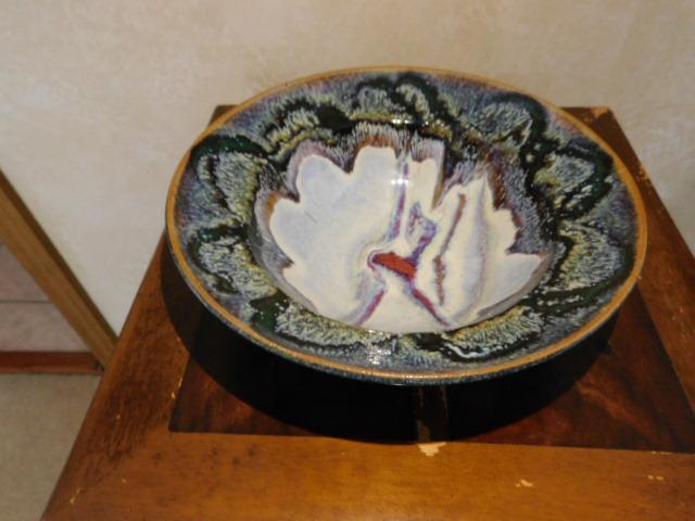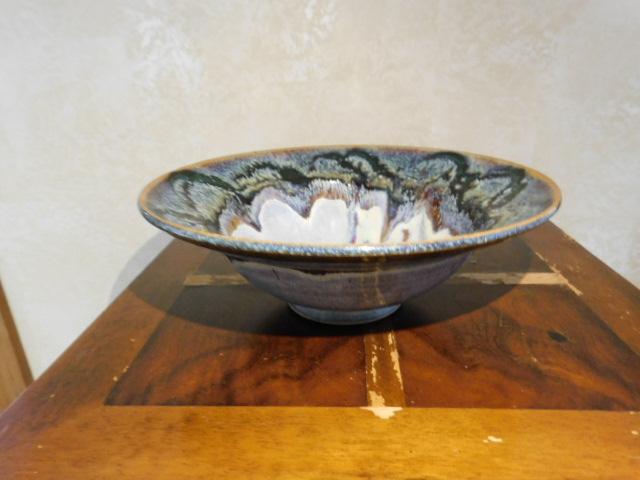 Artist Signed Handcrafted Drip Glaze Pottery Bowl 9"