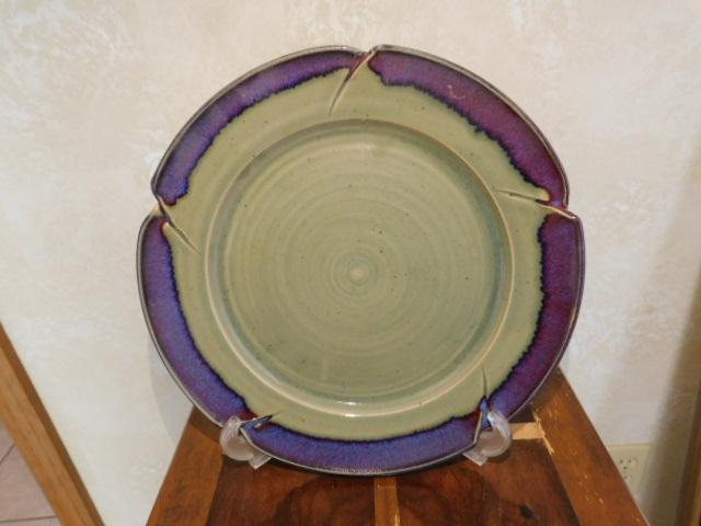 Artist Signed Handcrafted  Drip Glaze Pottery Platter 12"
